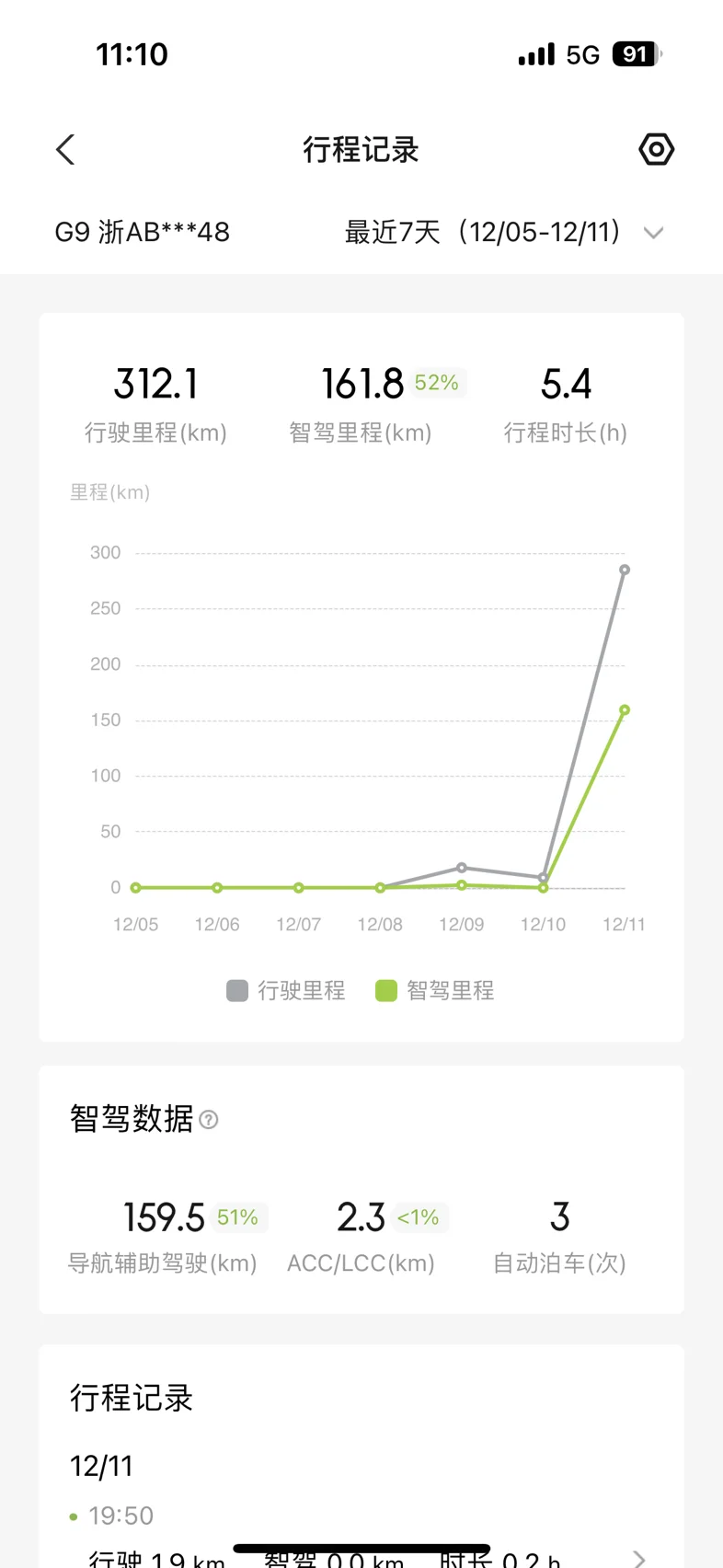 312公里的路程,智驾52%,确实开着很轻松