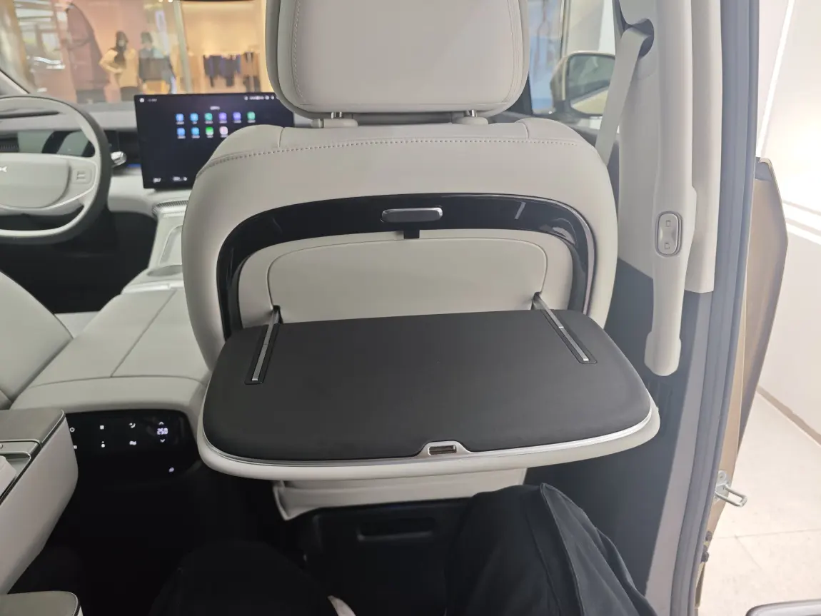 自从G6上市以后的几款车风格配色都走了家族化,设计很简洁清新。双无线充电,对了两个航空座椅上也各有一个,充电很方便。冷暖小冰箱,超薄的大彩电,小桌板还有7.1声道的扬声器,G6用户实名羡慕。#小鹏x9