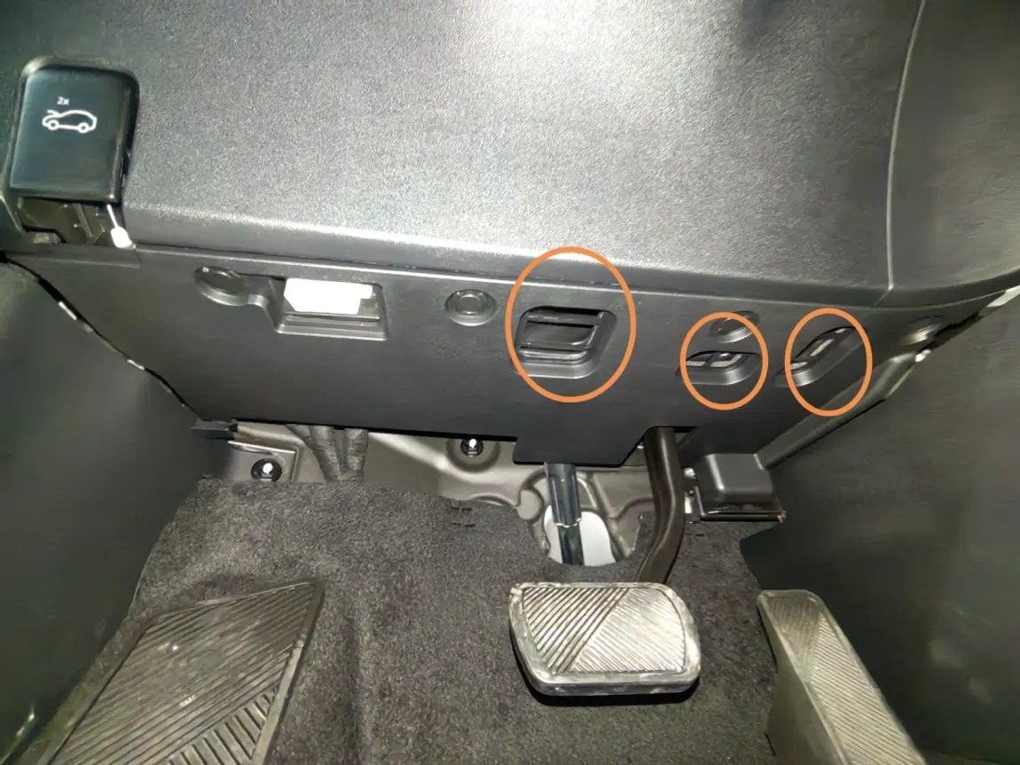 G6驾驶座下的空调出风口如图所示,一共三个,整体偏右,估计是很多车友腿冷脚冷的一个重要原因吧🤔