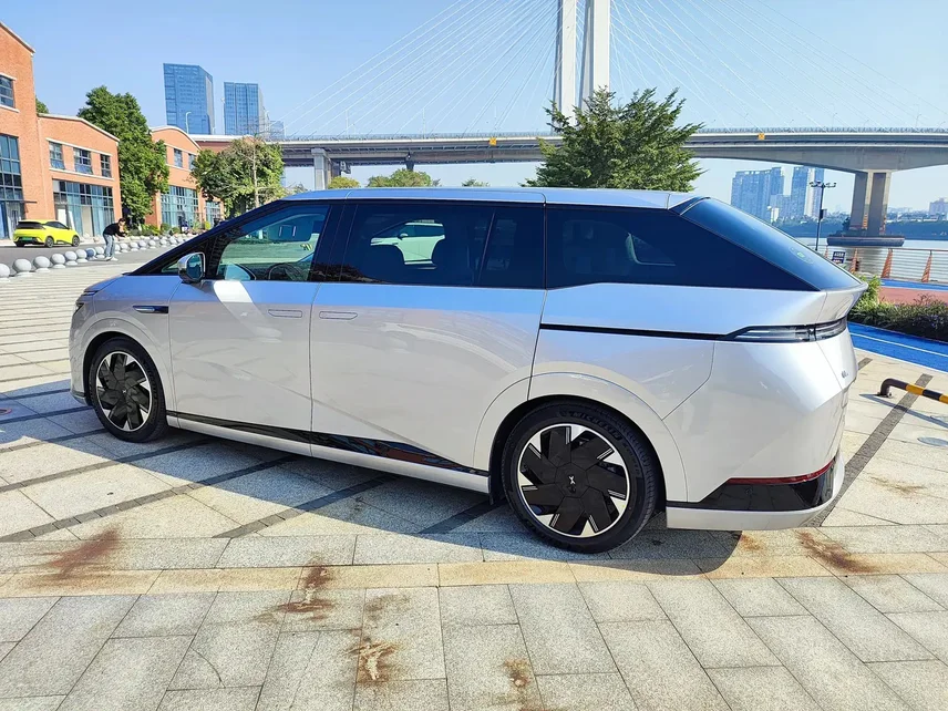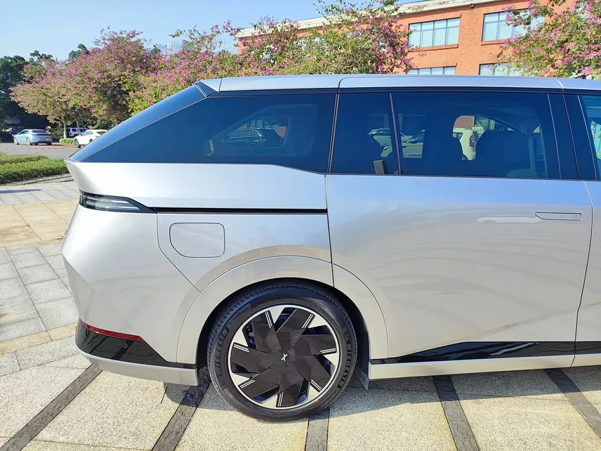 尾部设计是新车的一大亮点,23°大倾角后风挡溜背设计在MPV车型我还没有见过,棱角分明,感觉很凌厉,和极氪009的方盒子造型是截然不同的两种风格,多切面更立体,我个人还是更喜欢X9的设计多一点。并且尾部的字母标志是可以点亮的,相比G9的尾部略显平淡的造型我觉得好看了很多。
