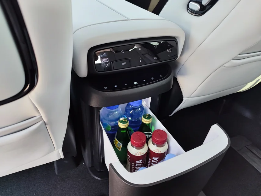 其实基本的一些参数大家也都知道的差不多了,中央空调大冰箱大屏幕大沙发,7.7平方米套内空间,2500多升的超大后备箱空间,这些都是发布会上介绍过的,也是X9的一些特点。