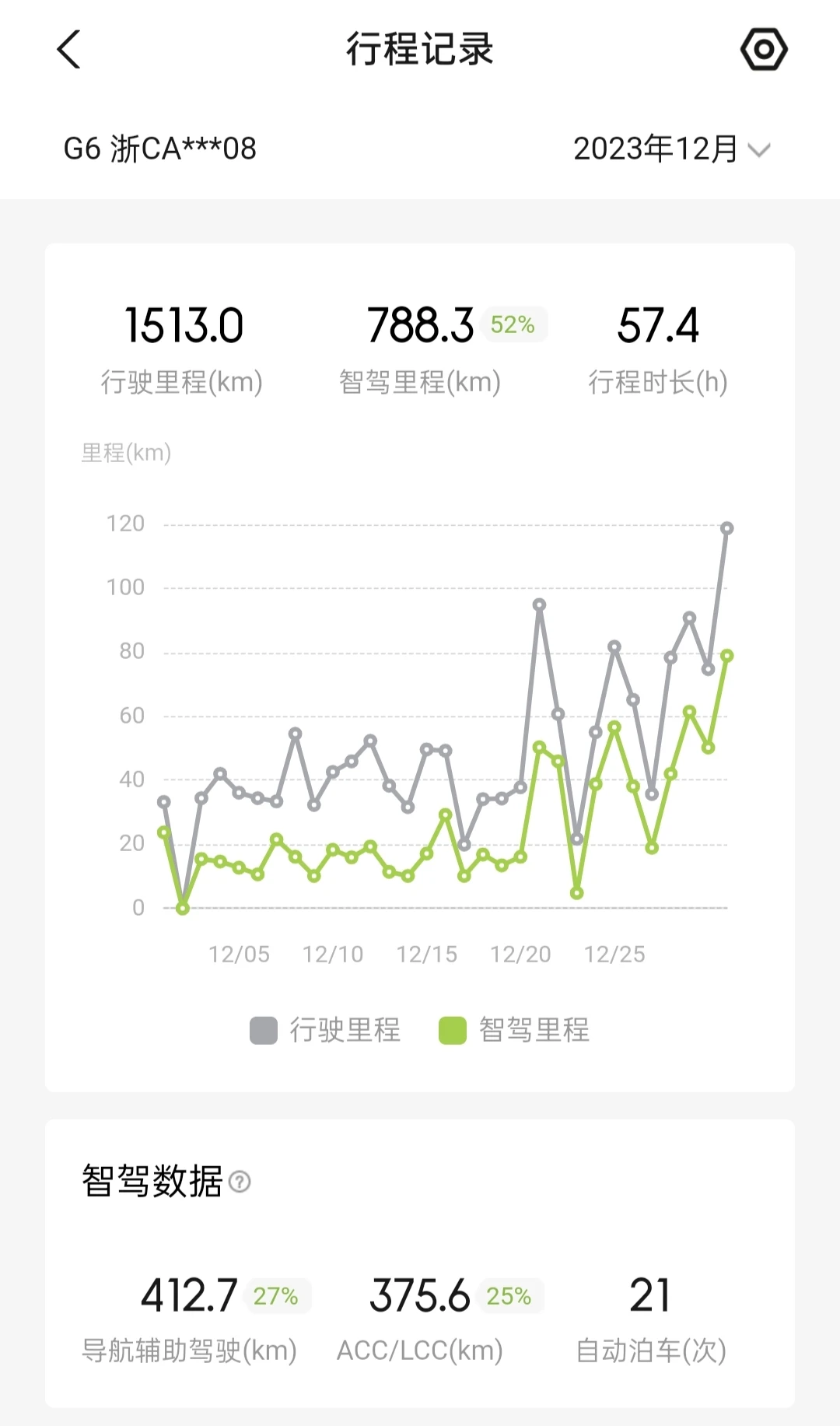 可以说,我买小鹏,一半是因为智慧座舱,一半是冲着智能辅助驾驶去的。现在已经完全离不开NGP了,一上高架或者高速就得打开,开的很轻松,时常有种意犹未尽的感觉。前段时间有一天NGP失效了,当天开的就浑身难受,上了NGP的瘾了。由俭入奢易,由奢入俭难,真不能想像以前开车是怎么过来的。智能驾驶基本覆盖一半里程了,可惜上班路线没被城市NGP覆盖到,期待AI代驾吧。