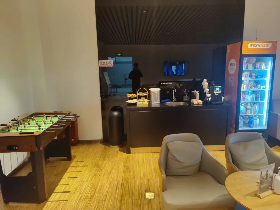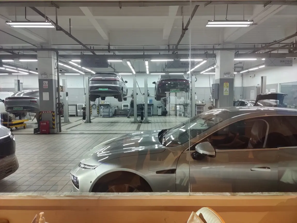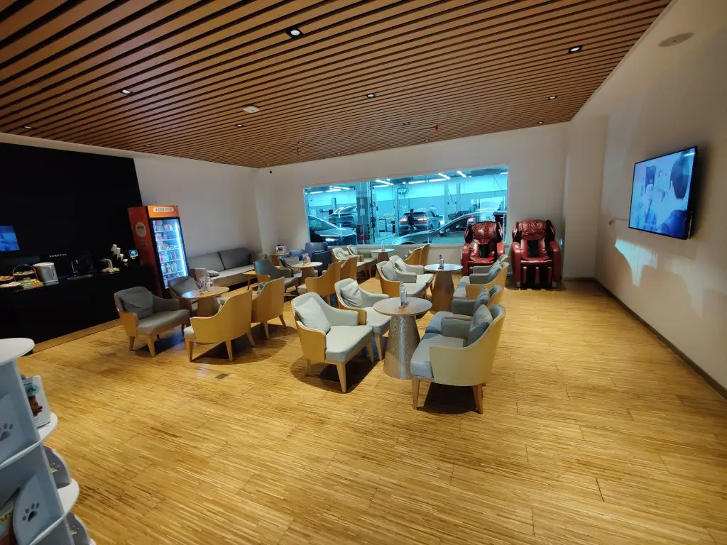 刚刚做了5000公里的首保,休息室造的有点像中小机场贵宾休息室,还能隔着玻璃直接看到车间检查进度。