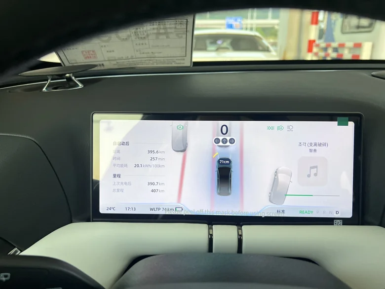 交付将钥匙交给我后,就让我慢慢看,不着急,我检查了上文中提及的项目,还在车上细细感受了一番音响,嗯还不错,略逊色于丹拿,但在新能源同级车中还是一、二位的。