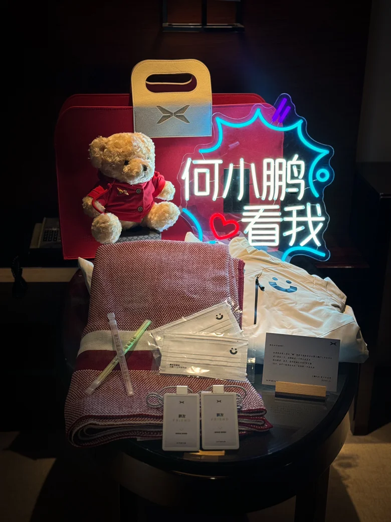 除了详细的流程介绍,工作人员还送给我一袋厚厚的伴手礼。这份伴手礼精心设计,内容丰富,不仅有小鹏汽车的各种礼品,还有特别定制的小鹏冲锋衣,充分展现了小鹏汽车的用心和诚意。