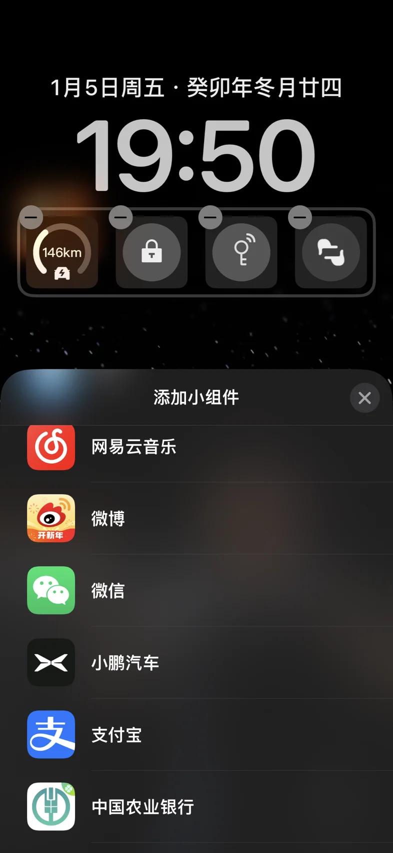 找到“小鹏汽车”,点击进去选择小组件
