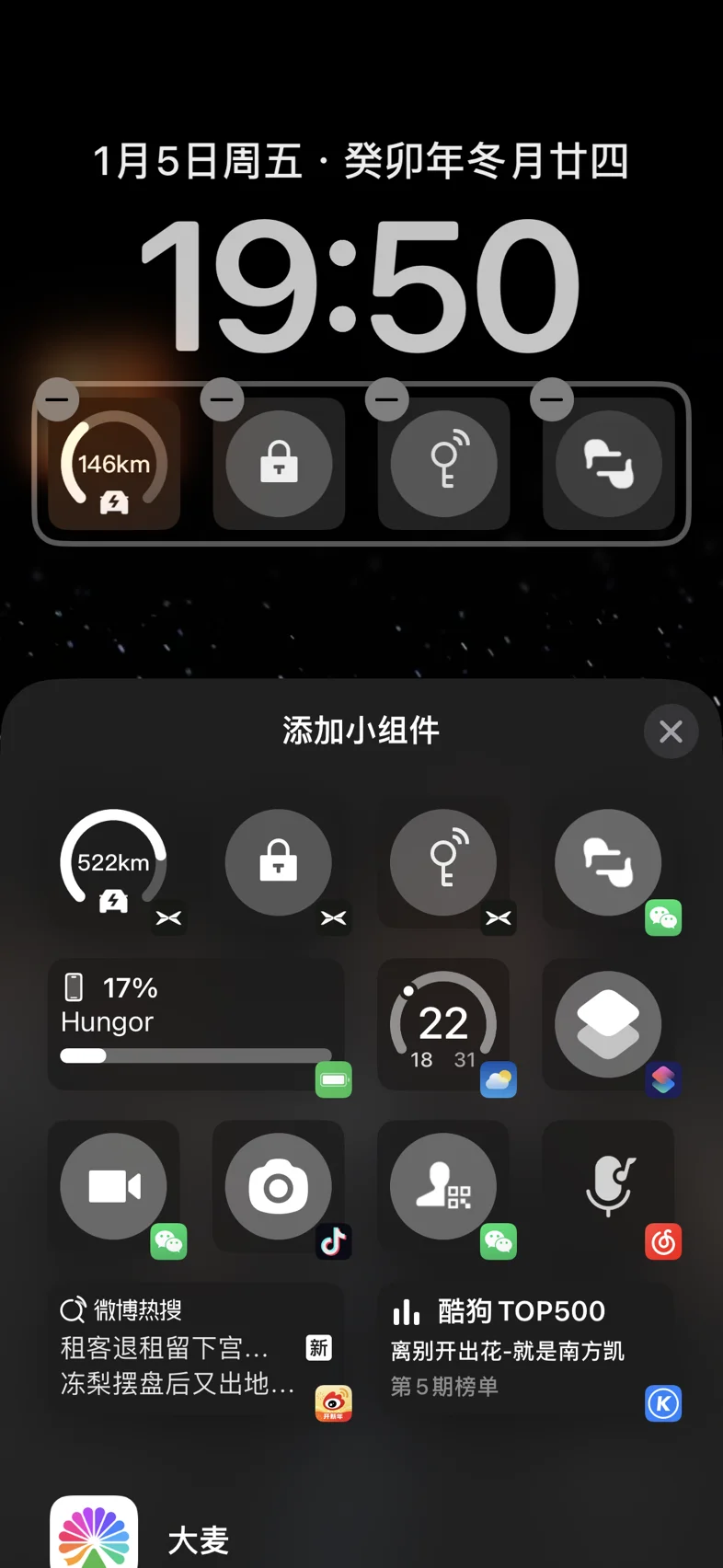 这里有两个,第一个是显示车辆续航的小组件