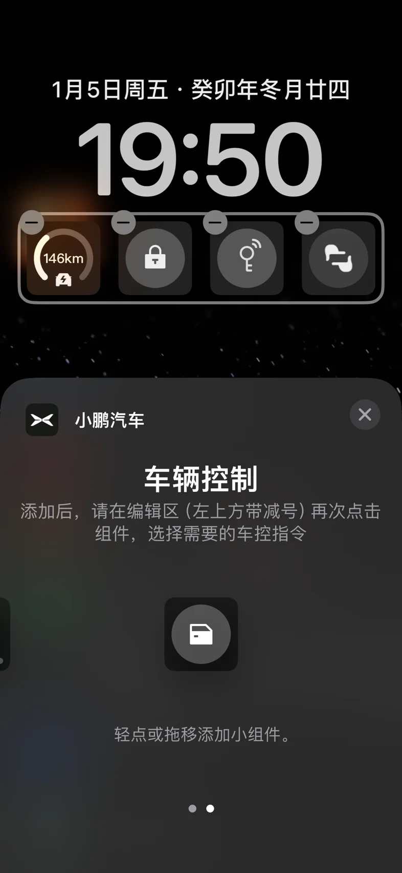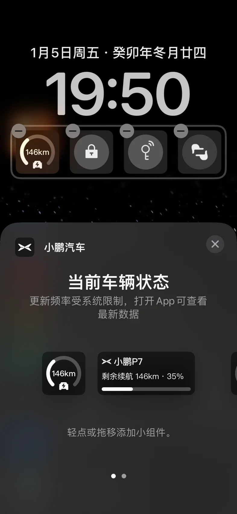 第二个就是这次小鹏汽车app的更新重点,车辆控制的锁屏小组件