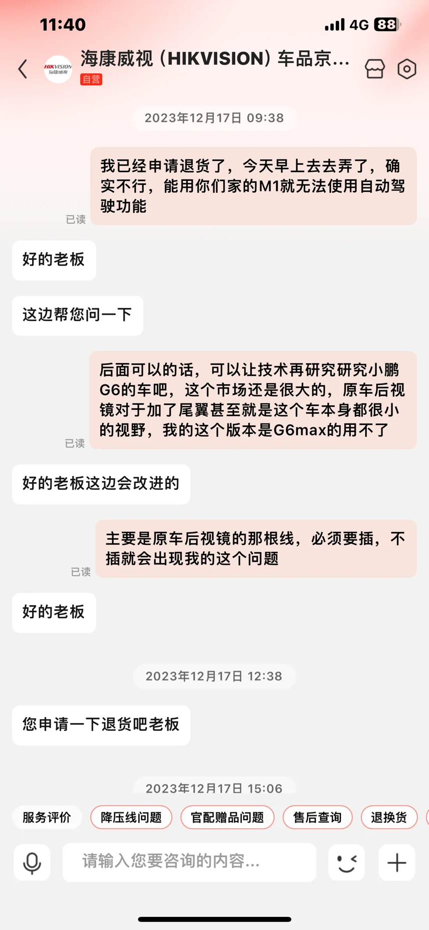 在鹏友圈里,看到有人推荐可以加流媒体后视镜,觉得非常有用,推荐的海康的M1,安装也非常痛苦,一定要装的话,还是需要专业一些的翘盖板的师傅,不够有一说一,盖板是真的弄的特别好。