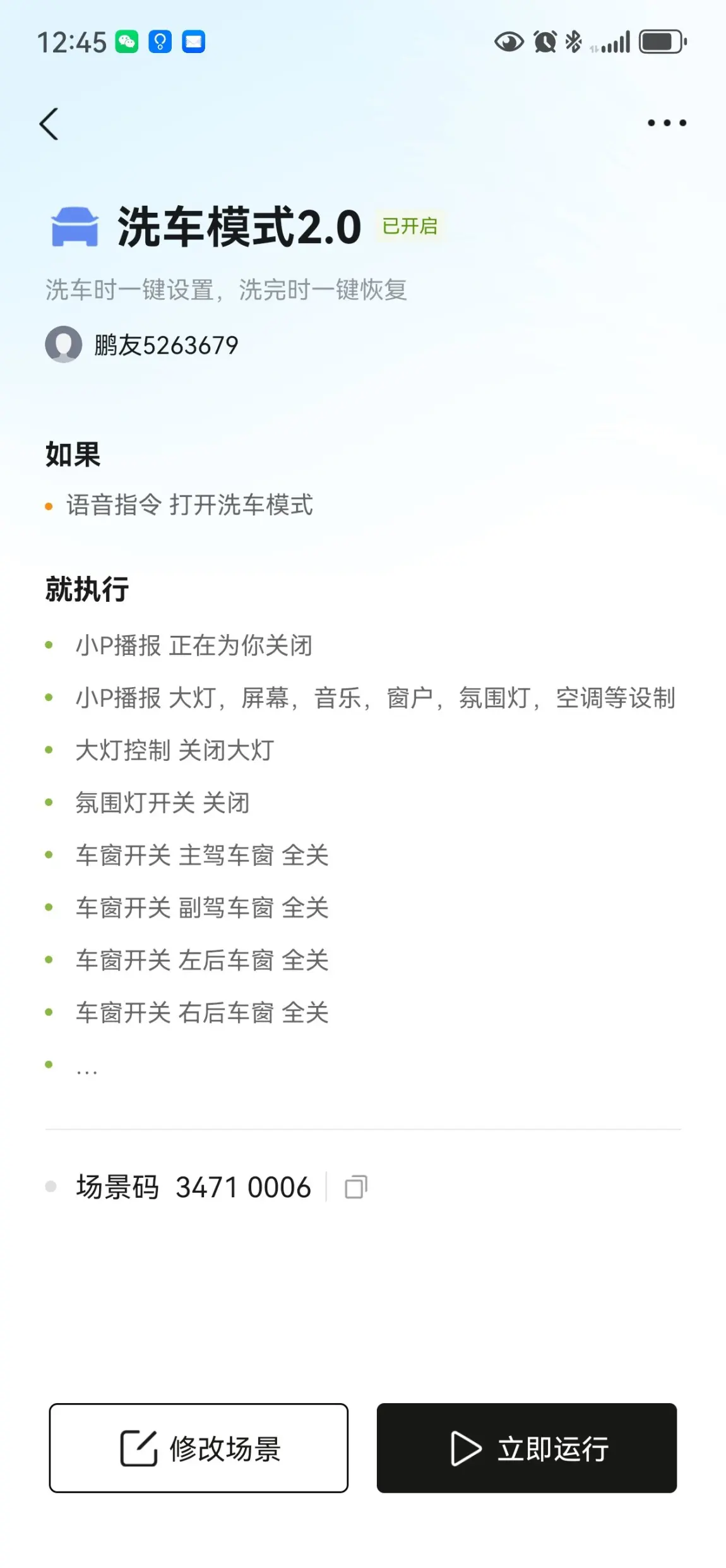 1.开启洗车模式后,人离开车之后会自动关闭车。