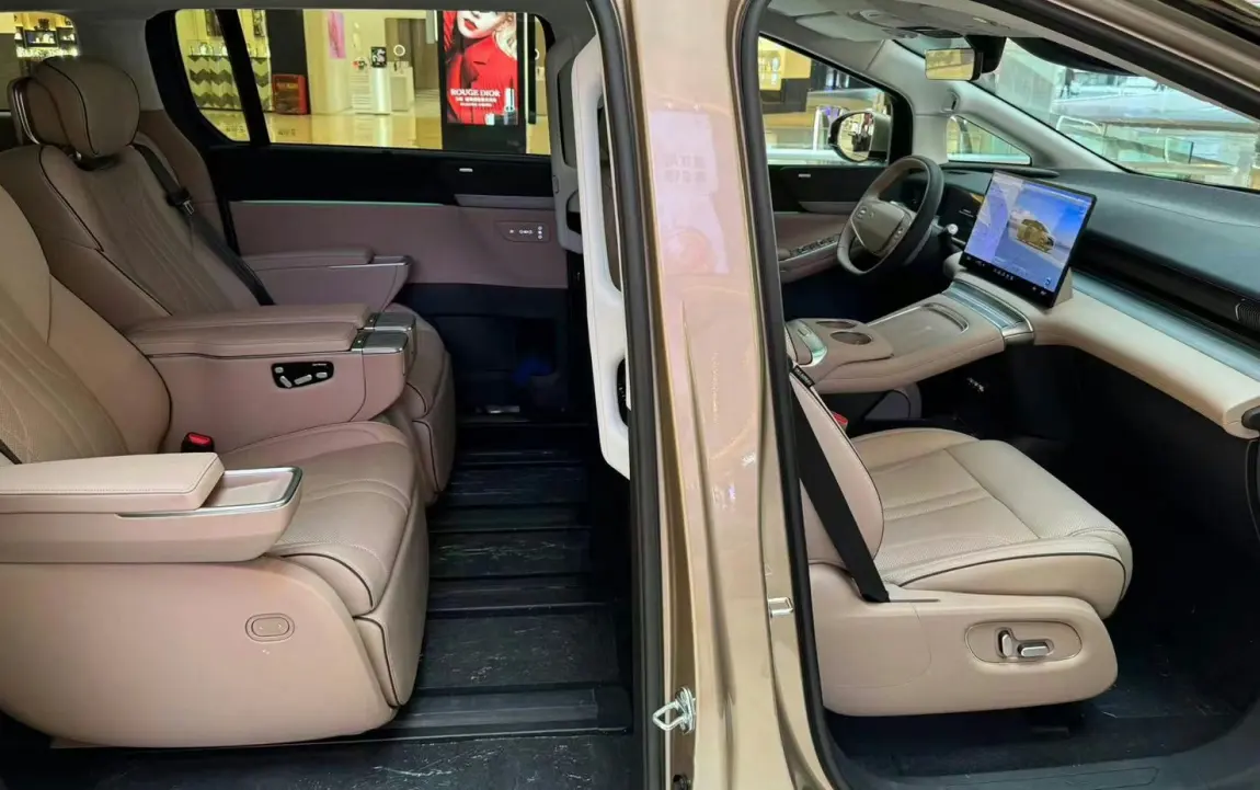 第二天给家里LD说,去看看小鹏X9吧,LD说MPV呀,那么大那么长咋开呀......还嫌麻烦,问我,买不买嘛不买就不浪费时间去看了,做了思想工作一家人都出发去看看。现场LD也试驾了,看着大开起还行......三排的魔术空间不错,还能放平,放个垫子可以当床了.......二排前面竟然还有桌板,小孩可以写作业了......电视好大,小朋友也喜欢,赖着都不想走,难得全家人一致认可,那就看上市的价格吧!那选什么颜色,这个交给LD,黑色、银色都曾经拥有过,金色不感冒,展车有白色看着还行,那就白色吧;