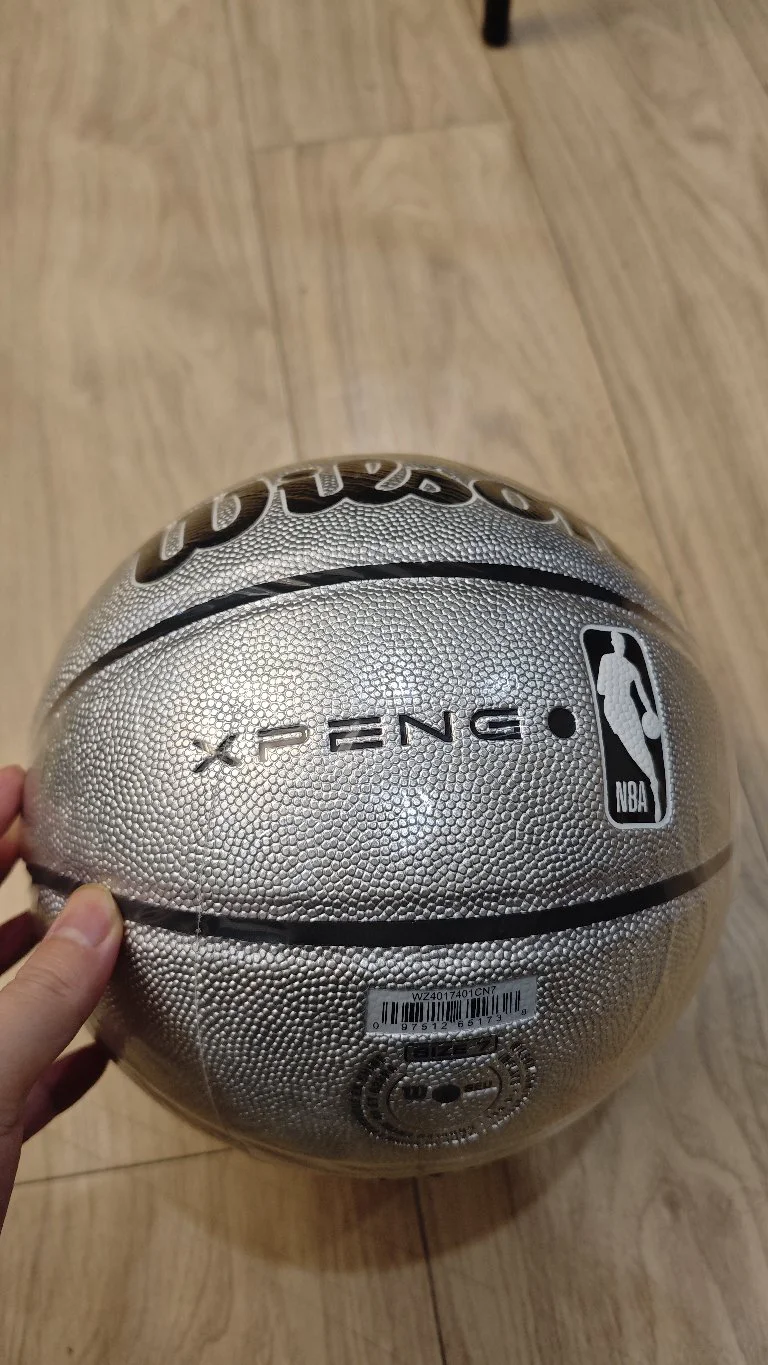 这个银色的篮球🏀好看,加上NBA联名就更有性价比,十分帅气和骚气。这款篮球是上次艾弗森到中国来使用的篮球,可以用来练习三分球、运球等篮球技巧。如果