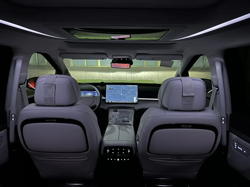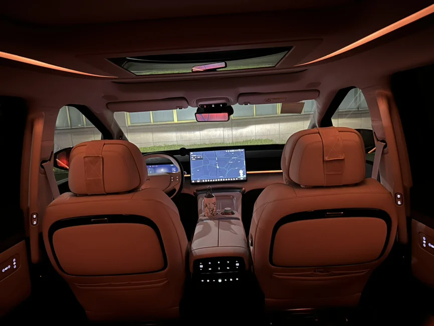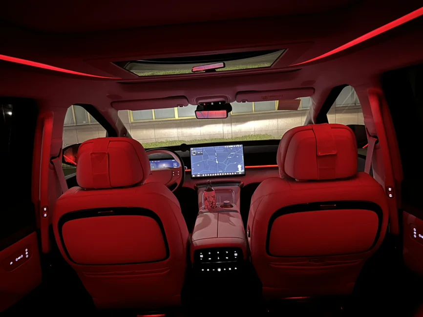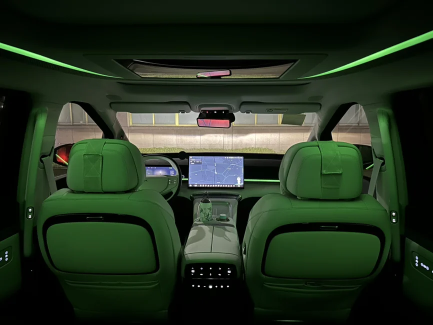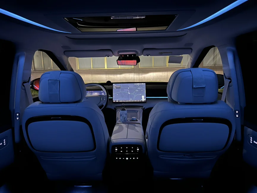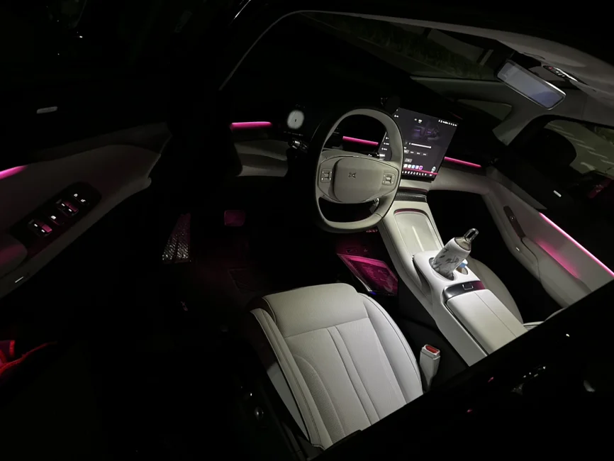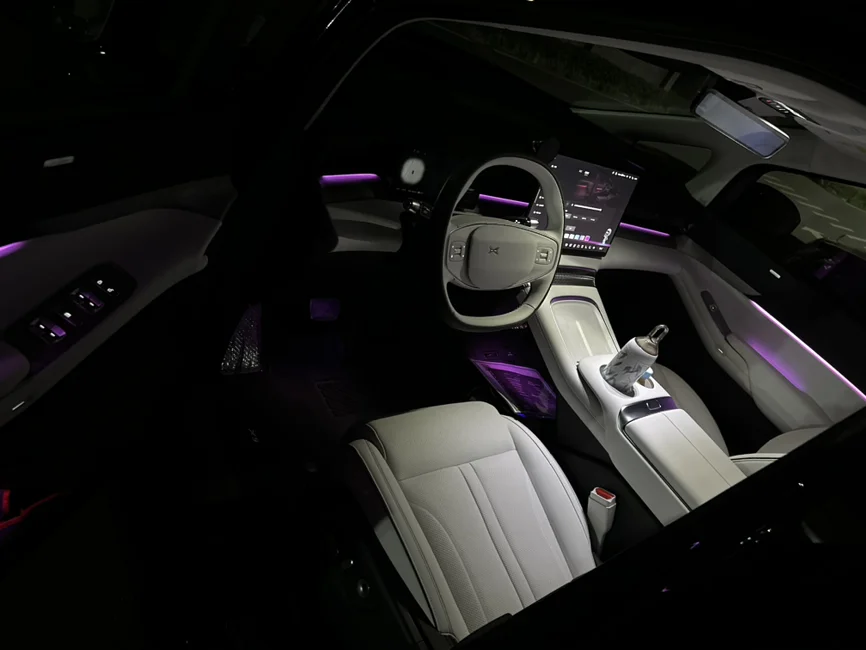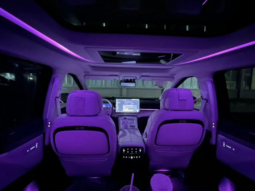 小鹏x9,夜晚的氛围灯还是很漂亮的。单色和双拼色随意切换,每种颜色给人不一样观感,动人心弦,要是小鹏内饰也有奔驰那套流水氛围灯就好了,随着温度和调节会变换,那就更高级了。呼吸灯有的话那就是氛围灯拉满了 ~