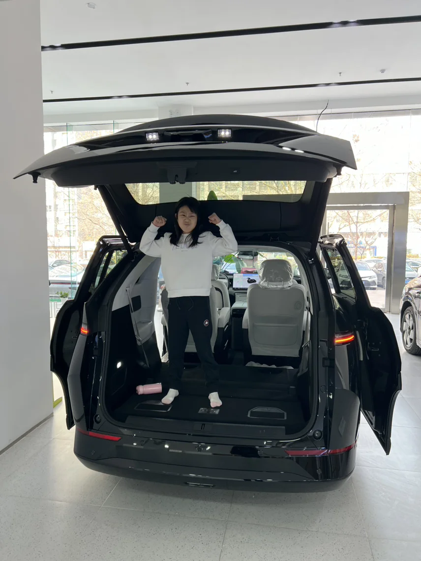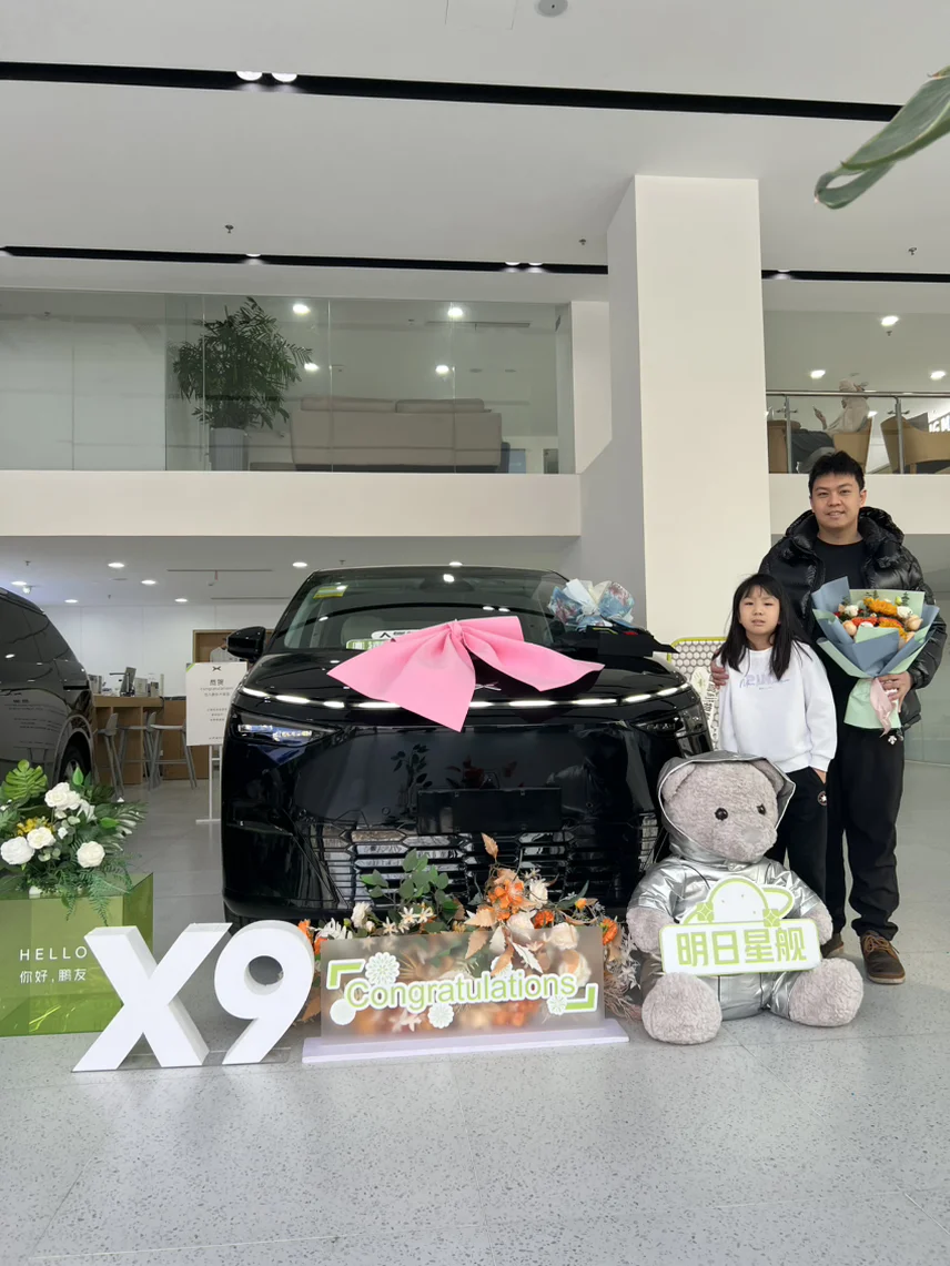 #晒出X9超智驾时刻# 2024年1月27日,送给自己36岁生日礼物。女儿无敌开心,无敌喜欢,大冰箱、大彩电、大沙发,过道版真的很方便,女儿自己跑到二排、三排每个位置去试坐,第三排收起前、后各种试睡,还吵吵着让给她买个床垫,麦克风,哈哈哈哈~老婆也很爱,X9真的是一家人的大玩具。小鹏今天服务很棒,交付经理很负责,销售经理还送了新春小礼盒,整个交车流程确实比传统油车交车流程时间会长一些,因为智驾要考试、所有功能都要认真学习,接下来的日子,和小鹏一起持续进 化,满电出发~
