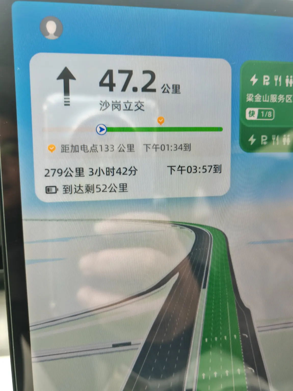 上了高速就全程交给NGP,太舒服了。路程中没有刻意省电各种音乐按摩空调开起来(本人最烦开油车不舍得给油,开电车还不舍得给电的,买了这么好的车就应该好好享受)