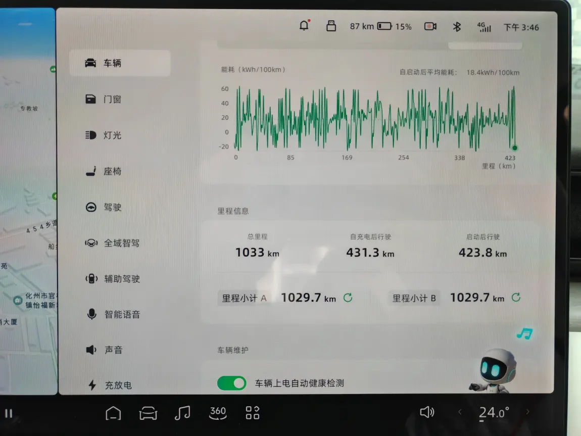最终去到目的地行驶423KM,充电后形式431KM,WLTP显示还有87KM,那续航应该轻松在500以上了,那么WLTP 非常扎实啊,基本1:1了。日常通勤行驶或者周边小长途出游都妥妥的毫无压力啊😎😎😎