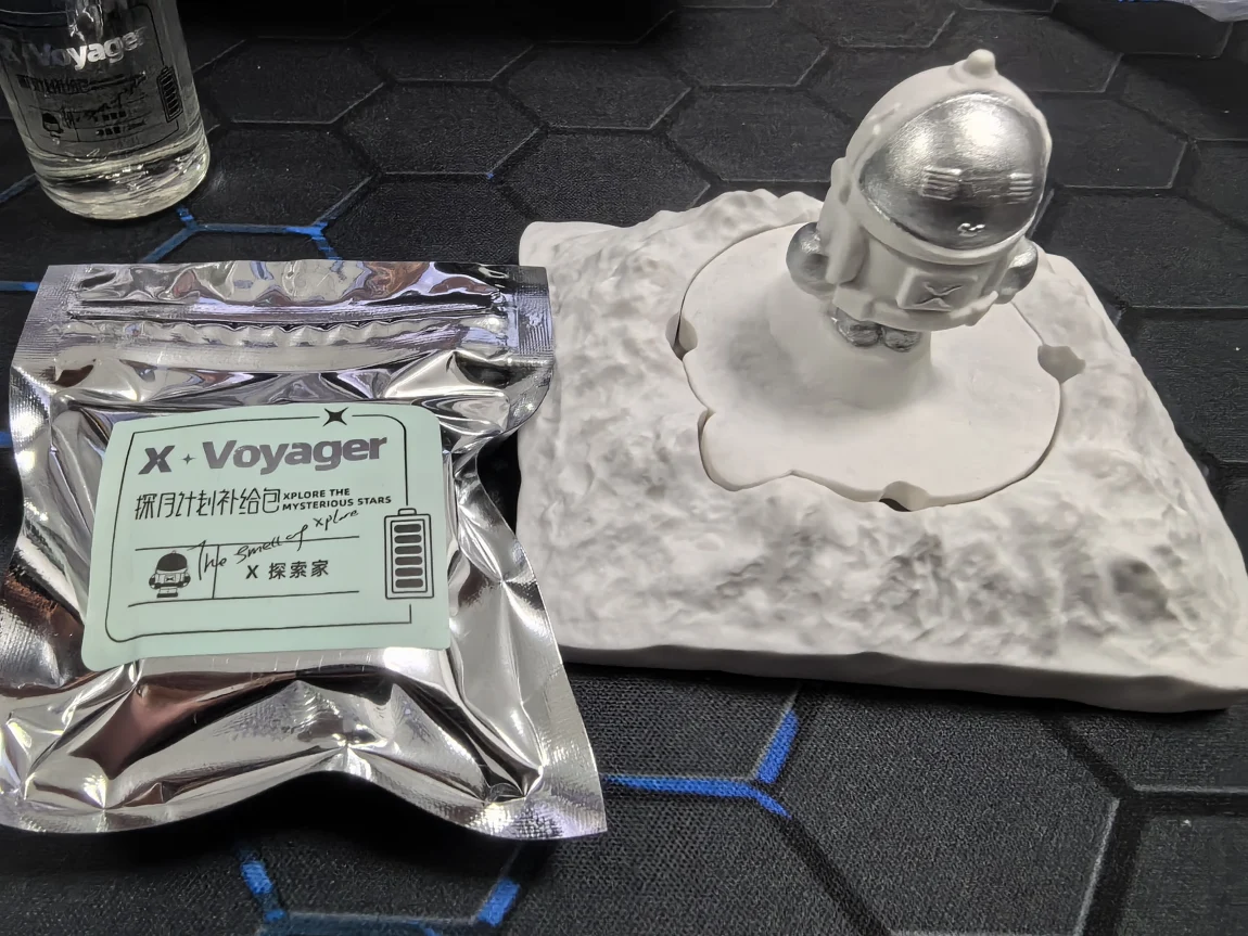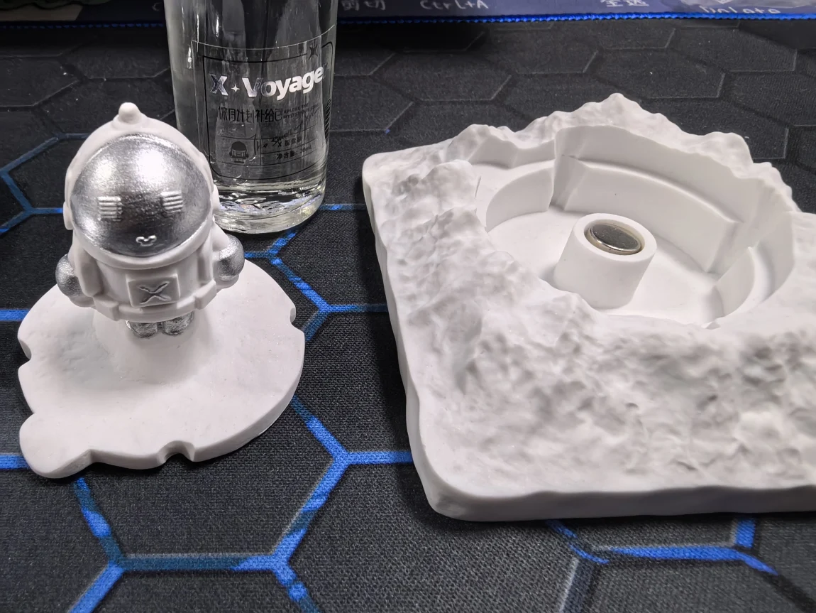 材质像是树脂材质的,造型应该是月球表面,太空人也是树脂材质,菱角分明,立体感很足。