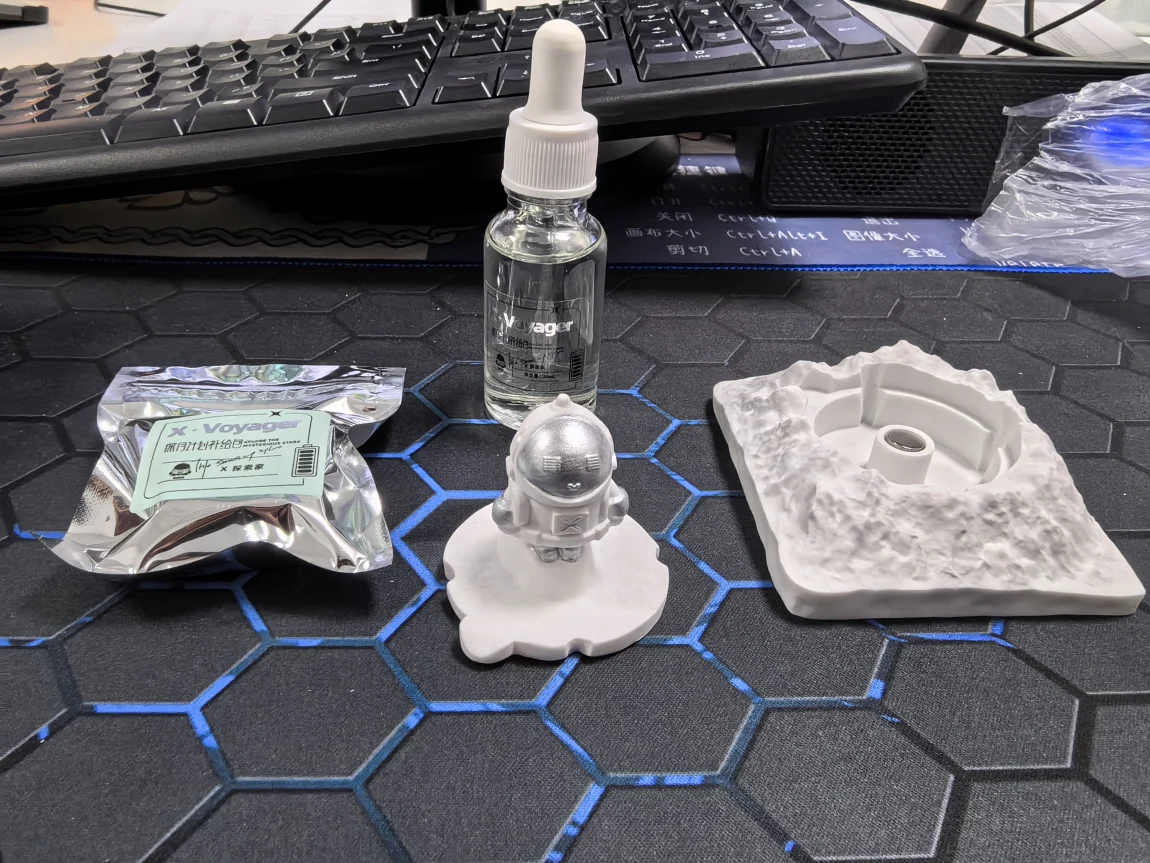 整体包装就充满着高级感,一眼看去就不是那种廉价香薰的感觉,打开包装后,香薰包括星球底座,探索者太空人,月球计划补给包(香薰片、香薰补充液)