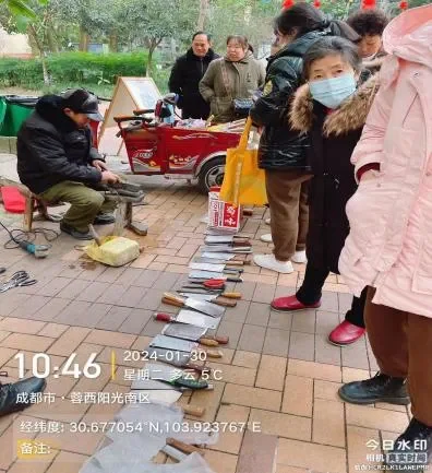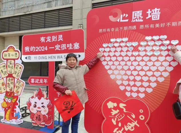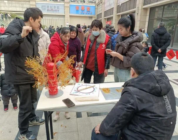 活动场景如诗如画,涵盖写春联、送福字、免费磨刀、猜字谜、非遗糖画、三大炮、免费测量血糖、血压,以及一场温馨的包饺子、包汤圆活动。