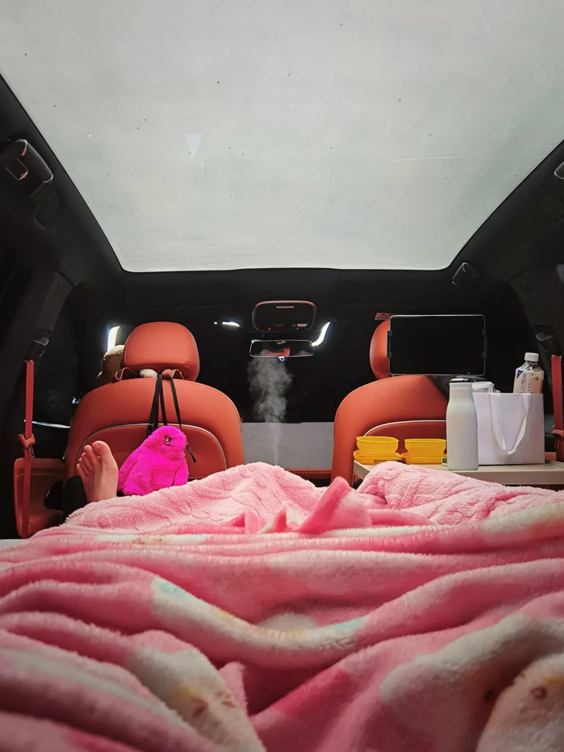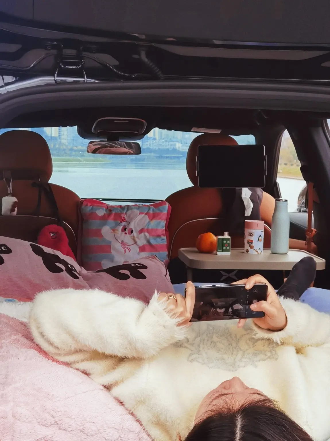 G9改床车过夜 | 成功上岸!😉睡车上的幸福感谁懂阿~开窗就是碧绿的沱江睡觉没开空调,仅开了外循环,一晚上消耗20km的电,听说开空调会消耗40-50km(我是纯电车哈),总之四舍五入等于不要钱啦,酒店都省了姐妹们~折叠便携马桶一定要安排哈哈,不受制于厕所的感觉太棒了,可选的地方更多,而且高速堵车完全没在怕的。马桶在手,世界我有!anyway,第一次电车上过夜算是成功啦,欢迎一起讨论交流🐽 #床车生活 #电车露营 #床车旅行 #小鹏自驾之旅# @社区活动小姐姐
