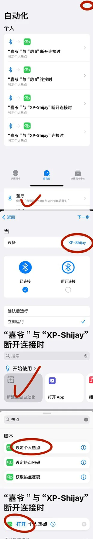 添加好后,再添加一遍断开蓝牙,自动关闭热点的操作。