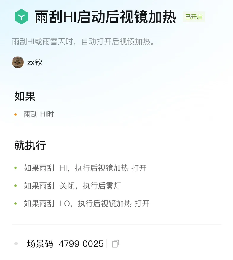 2.根据雨量自动调节后视镜加热和雾灯(场景码 47990025)