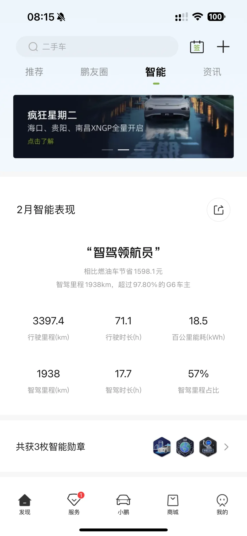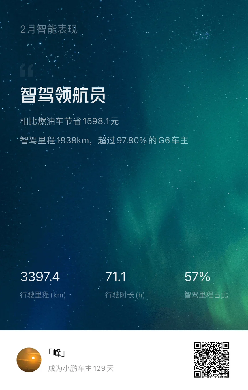 不知不觉小鹏G6已经提车4个月了,在2024年2月份,我和它一同行驶了3300多公里,其中智驾里程快2000km,下面就让我来与大家分享一下G6的一些驾驶体验。