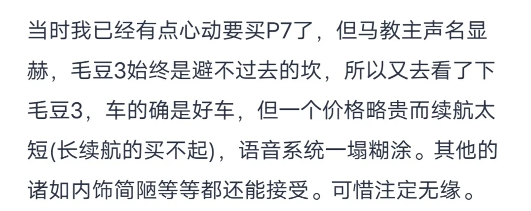 我想,这位鹏友说出了我真实的想法,当然还有人说,也可以选择比亚迪汉啊,我要在这里再次声明,在我的认识里汉和P7完全不是一个概念的产品,两者都属于电动汽车,但是小鹏是智能电动汽车,汉不是真正意义的智能电动汽车。