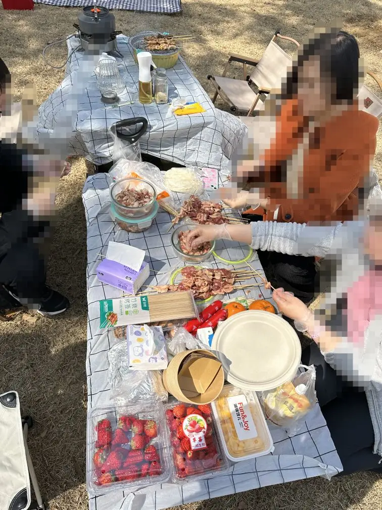 3. 搭天幕:可以选择一个离小孩游乐区旁选个平坦地方搭天幕,带娃喝茶两不误。也可以选择在湖边搭,风景更美。主意可以使用地钉和防风绳来增强天幕的稳定性,确保天幕不会被风吹倒或飞走。