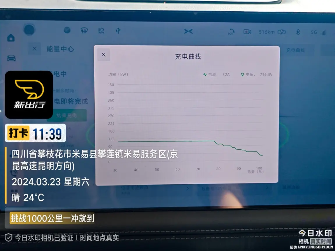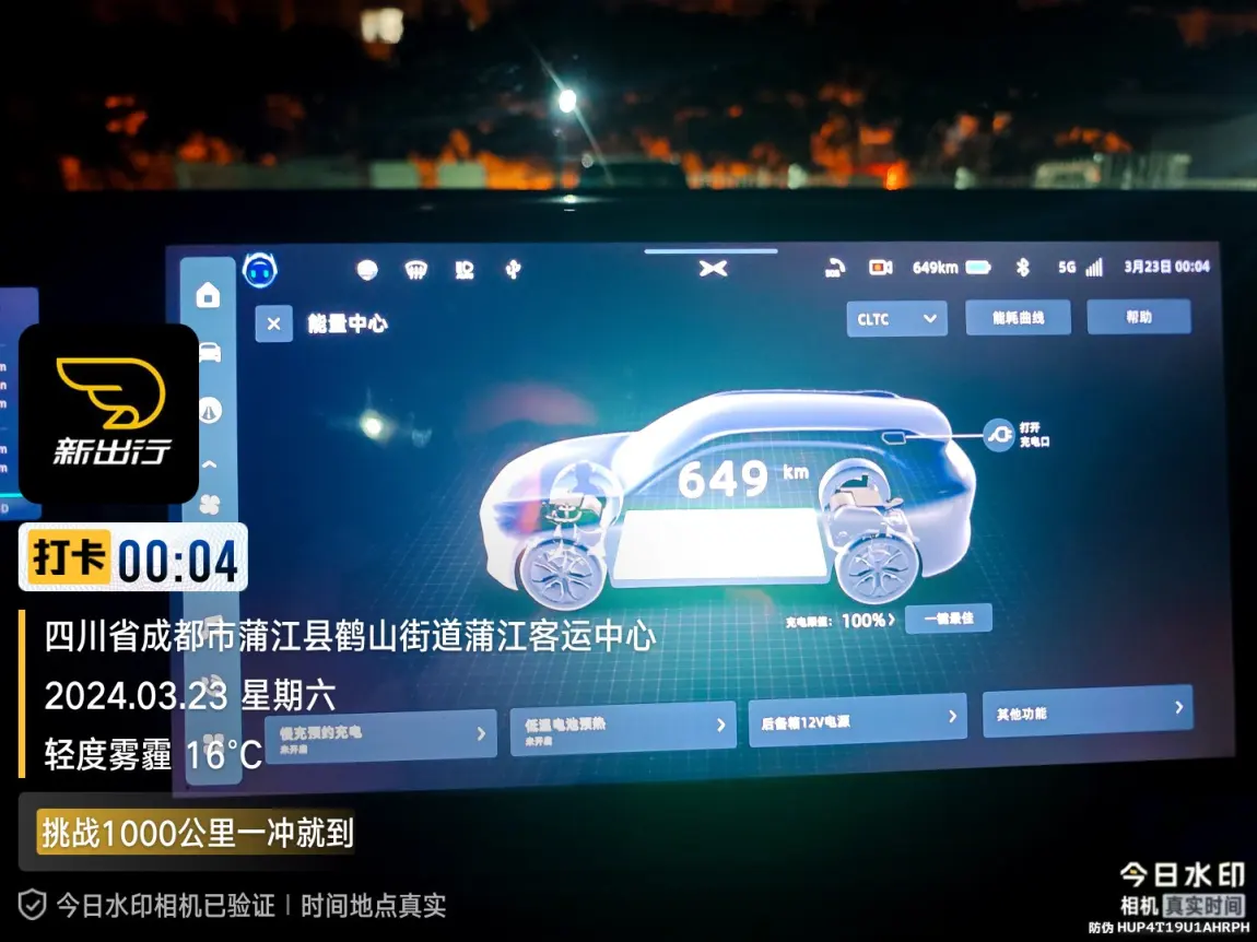 近日,我有幸参加了新出行App汽车平台举办的“挑战1000公里中途冲一次就到”的评测挑战活动。作为小鹏G9的车主,我怀揣着对车辆续航能力的信心,从成都蒲江客运中心充电站满电出发,驾驶我的小鹏G9 650MAX,踏上了前往丽江的旅程。