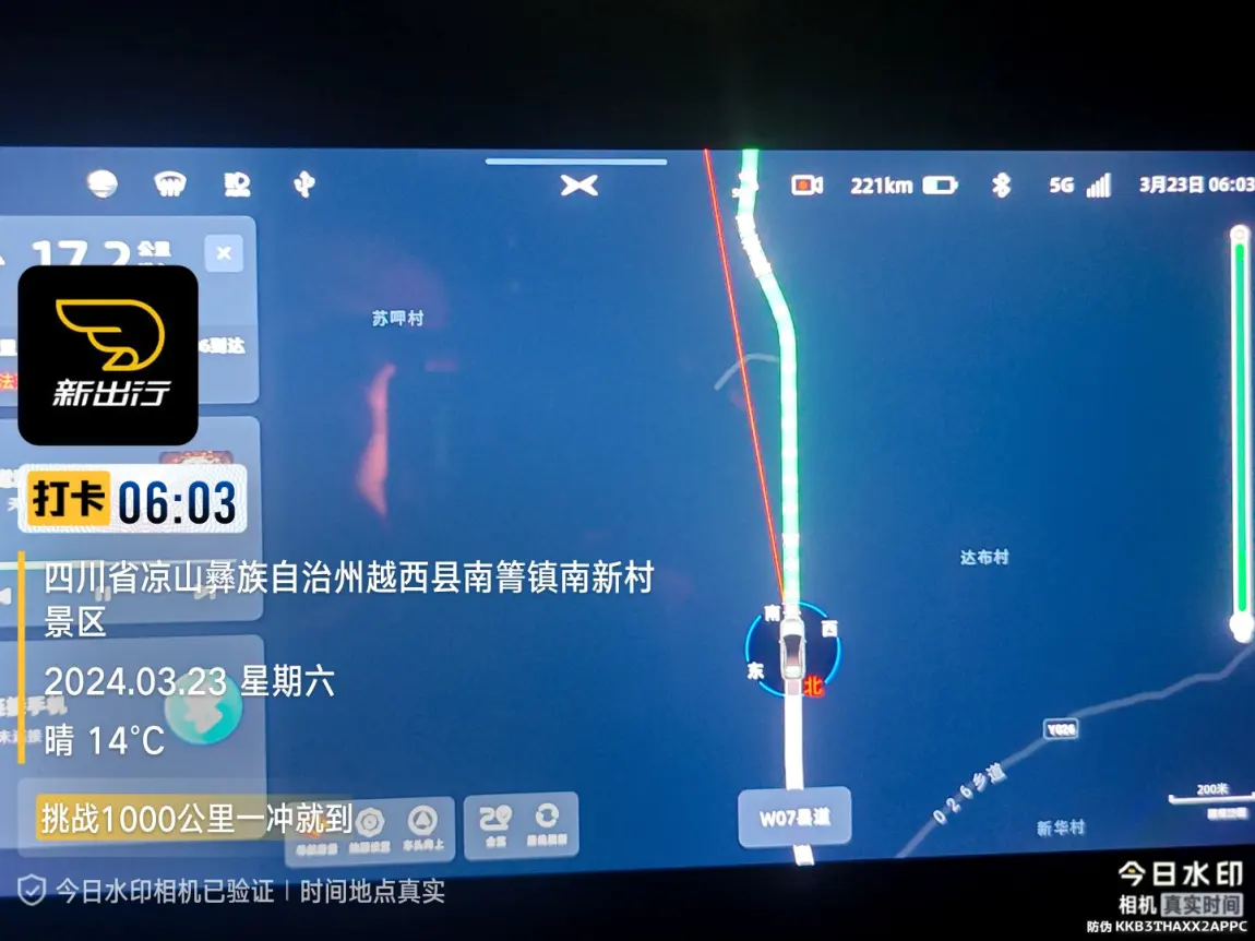 然而,旅程并非一帆风顺。在石棉县,我们遇到了重大事故山火,高速和108国道被封锁,我们被迫下道走乡道翻山绕行150KM到达越西县。这段路程对于小鹏G9的续航能力无疑是一次严峻的考验。但幸运的是,G9的三电系统表现出色,即使在翻山越岭的乡道上,也能保持稳定的能耗表现。