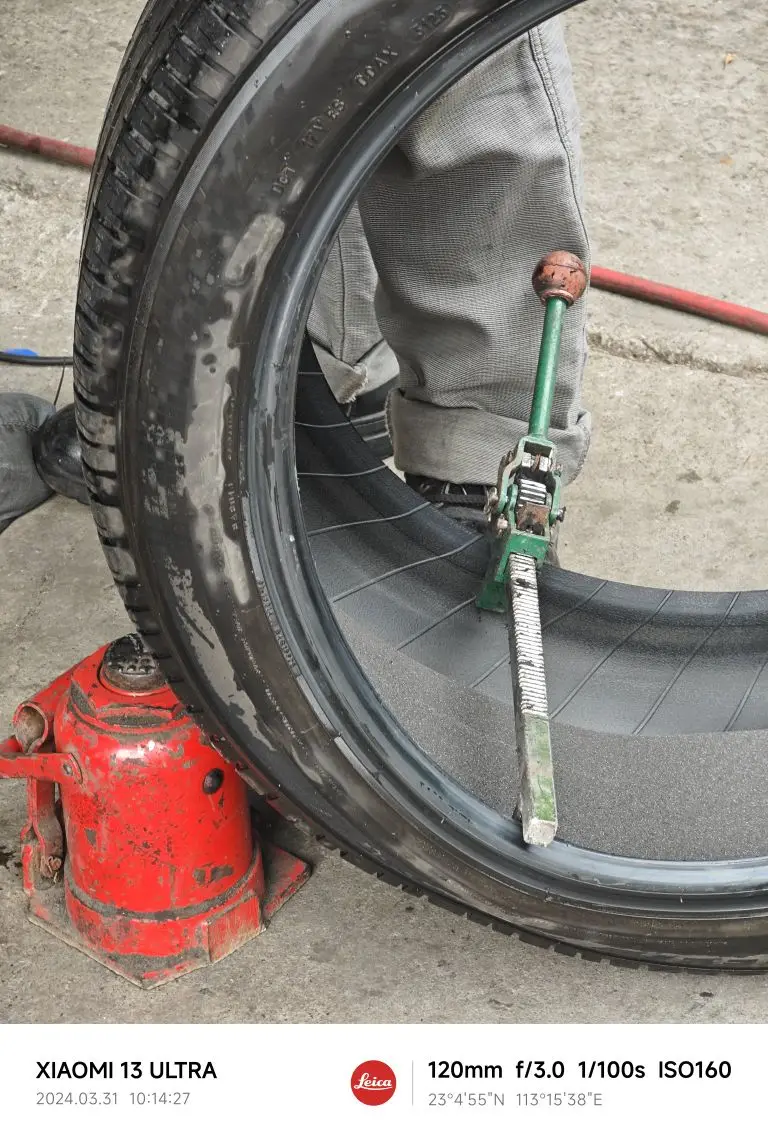 过年后车胎一直慢漏气,一个星期漏0.1,一个月补一次气,今天抽空去补胎那里检查一哈,扎了个小钉子!还好没扎到静音棉位置,不过车轮太大,补胎好贵!
