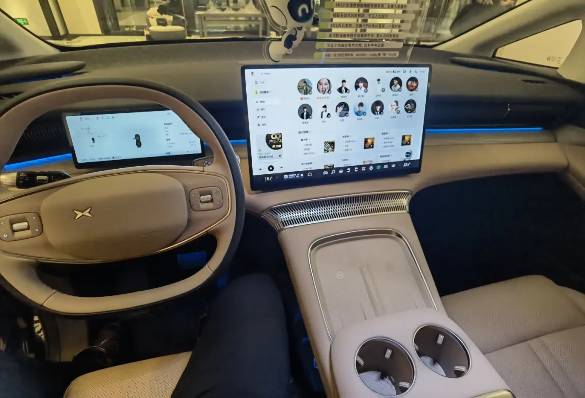 步入车内,小鹏X9的内饰布局和材质选择同样令人惊艳。细腻的皮质材料,精致的工艺细节,营造出豪华舒适的乘车环境。