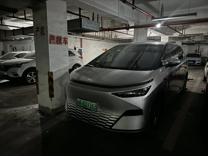 我家这个地库柱子多,道路窄,我的车位又恰巧车头靠着立柱,对面和边上也都是SUV大车,想来X9一把入库也是不可能的。所以在去年试驾刚开放时,就马上约了销售做了一次上门试驾。这里也必须夸夸小鹏的销售,第一时间开了X9过来看看停车的实际情况。