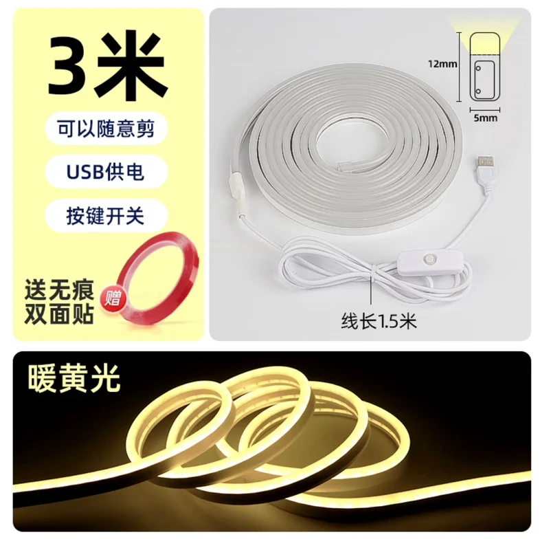 最后把灯带塞进胶条缝隙,末端稍稍长了一点,断电状态下瞄准灯带上的小黑点,用剪刀剪掉盖上保护盖就可以了。