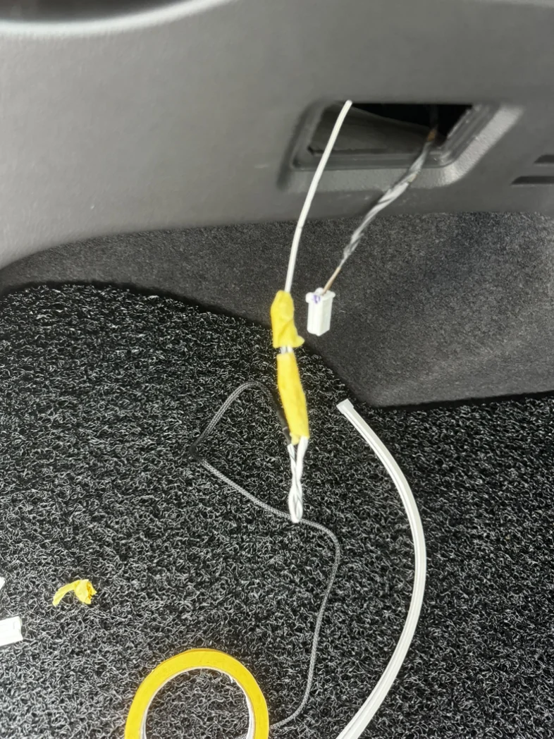 线束小插头从图中位置引出,和灯带插头对插,我给线束缠了些线束胶布,以防磨损。