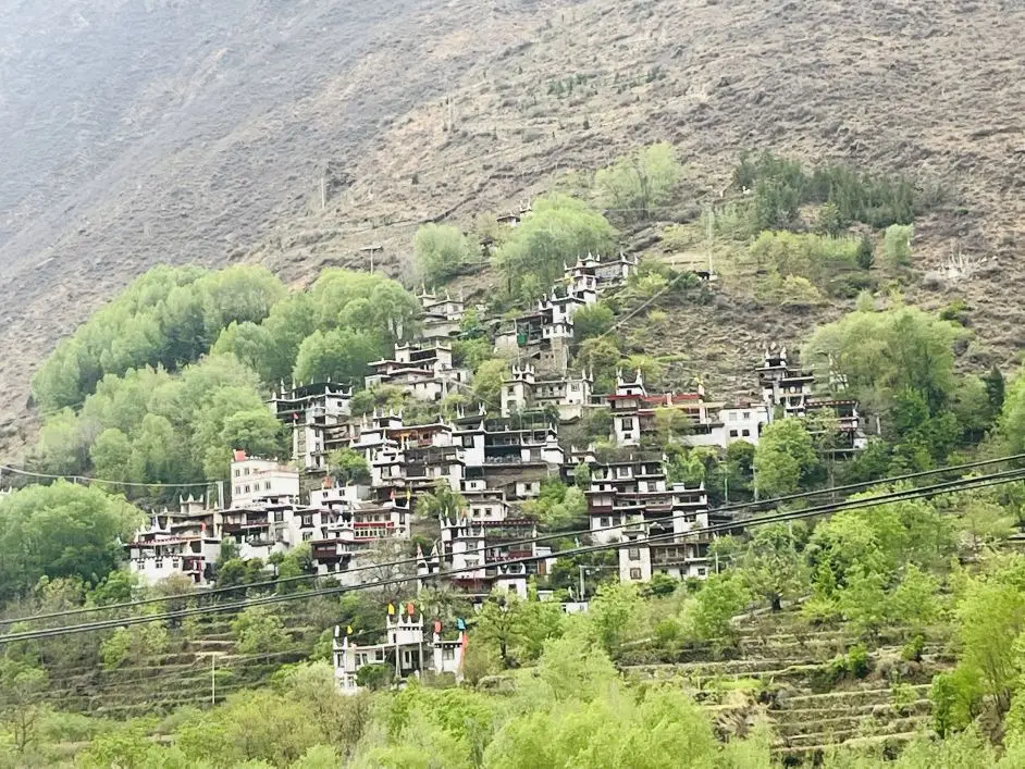 在小金县城充电+吃饭,加电差不多200km到达444km,桩子只充到95%。继续从小金出发到丹巴,看藏寨。没有进去,不想花门票钱。