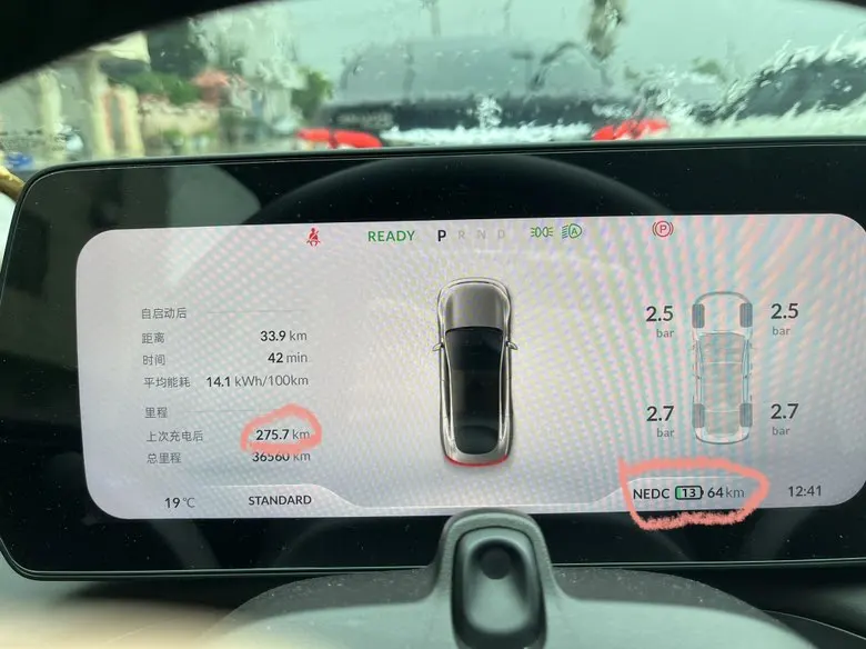 #续航挑战# 室外温度19度、下大雨车子满载、满电从清远老家出发反回佛山,