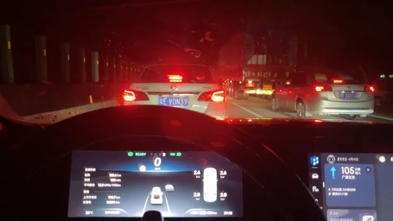 三段堵车路段、属最后那段最堵了🙄这个温度对车子还算友好能耗13.8左右、没有掉电很厉害,开到腰酸背痛腿痛屁股痛、后排空间真真真真真太挤了😱满载才深刻体会到拥挤,后排脚脚窝得是真的难受😥……