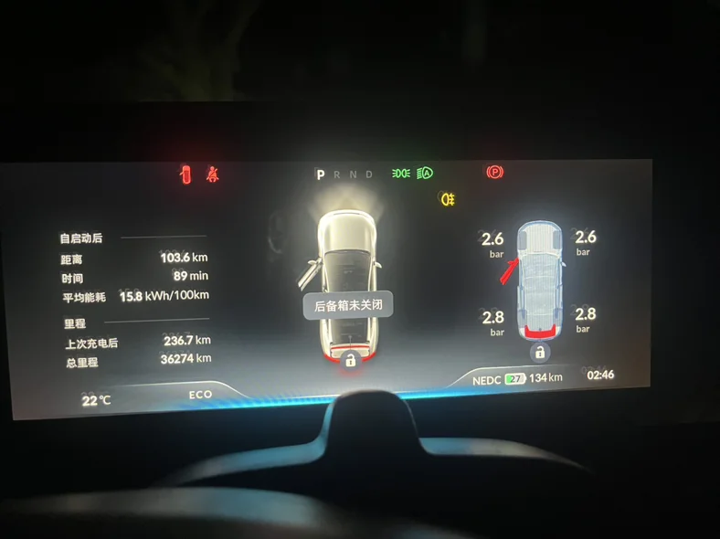 从佛山回去的时候后备箱也装满了,也是满载堵车开了五个小时、满电480跑236公里剩下134公里、要是能跑个300公里省100公里这样子就好了、说明堵车对续航影响不是太大、主要可能还是看温度、温度太低能耗高很多……