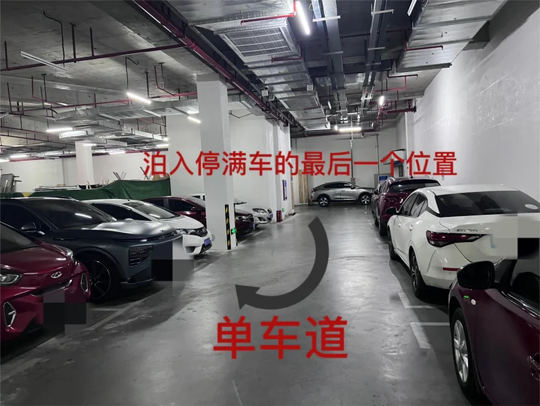 这张图可能看不出难度,实际这是个标准通道,因车位不足,所以右侧靠墙位置又划线了车位,剩余空间仅余一辆车通过。稍不注意便会刮擦,因泊车引发的事故已多起。