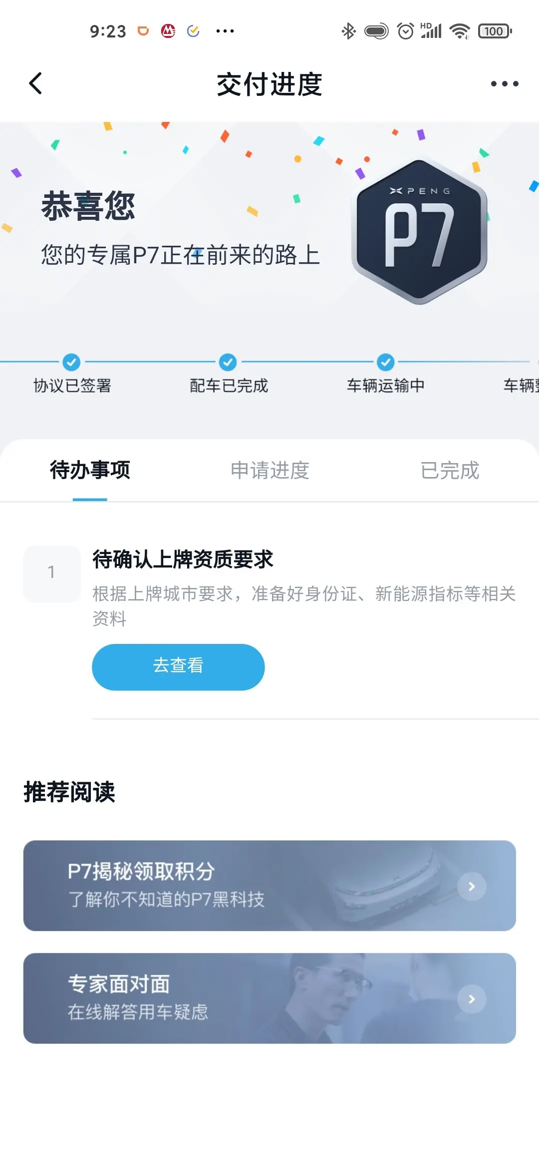 APP没有推送消息,日常打开APP看下进度,居然已经在运输了,前天才配车完成,有点小惊喜~~