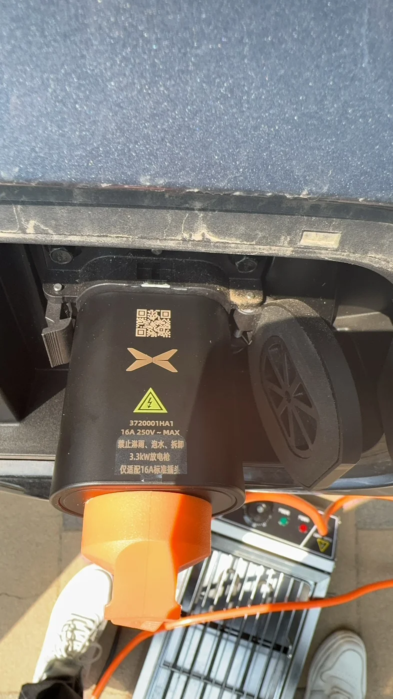 我的是2021款小鹏p5,本来想去室外烧烤,但是插上之后一开电就显示外放电故障,后来联系客服才知道,只有2024款的p5支持3.3kw的外放电功率,其他老版本的最高只支持2.2kw的外放电功率,所以在这里也告诉大家一下,以后出门用外放电注意一下自己的用电器功率,另外,尽量买小鹏商城里面的转换接头,这样避免白跑一趟哈,