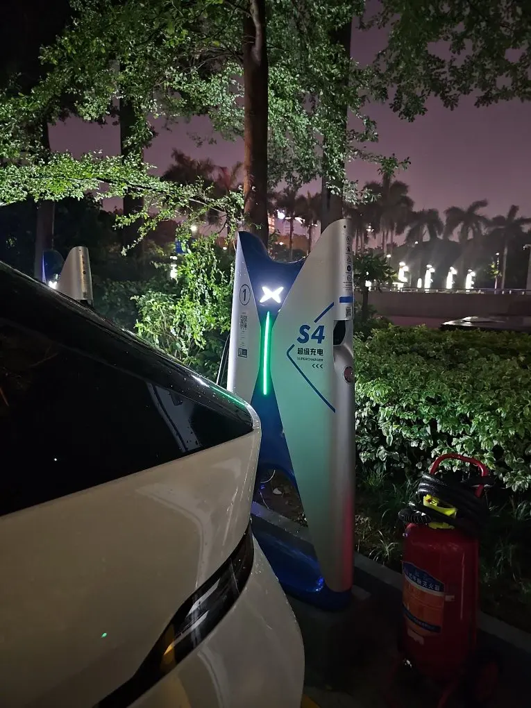 #晒日常充电环境# 第一次充电25%去万科A32吃个拉面刚好楼下有小桔充电,上楼,吃面,下楼刚好90%,于我来说挺快了。当时和老婆调侃说第一次充居然不是小鹏自己的桩。当时想着第三方桩都这么快就想试试小鹏自己的S4超充桩,距离我最近的是千灯湖酒店超充站。第三次终于让我排上超充桩。就是如果其他桩位也在充电,功率就会降低,体验拉不到那么满。还记得第一次充电的时候还有点怕怕的,和老婆小心翼翼研究。没事就下车拍下照片