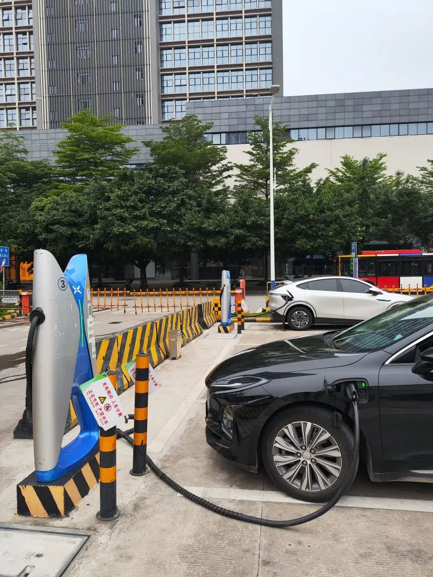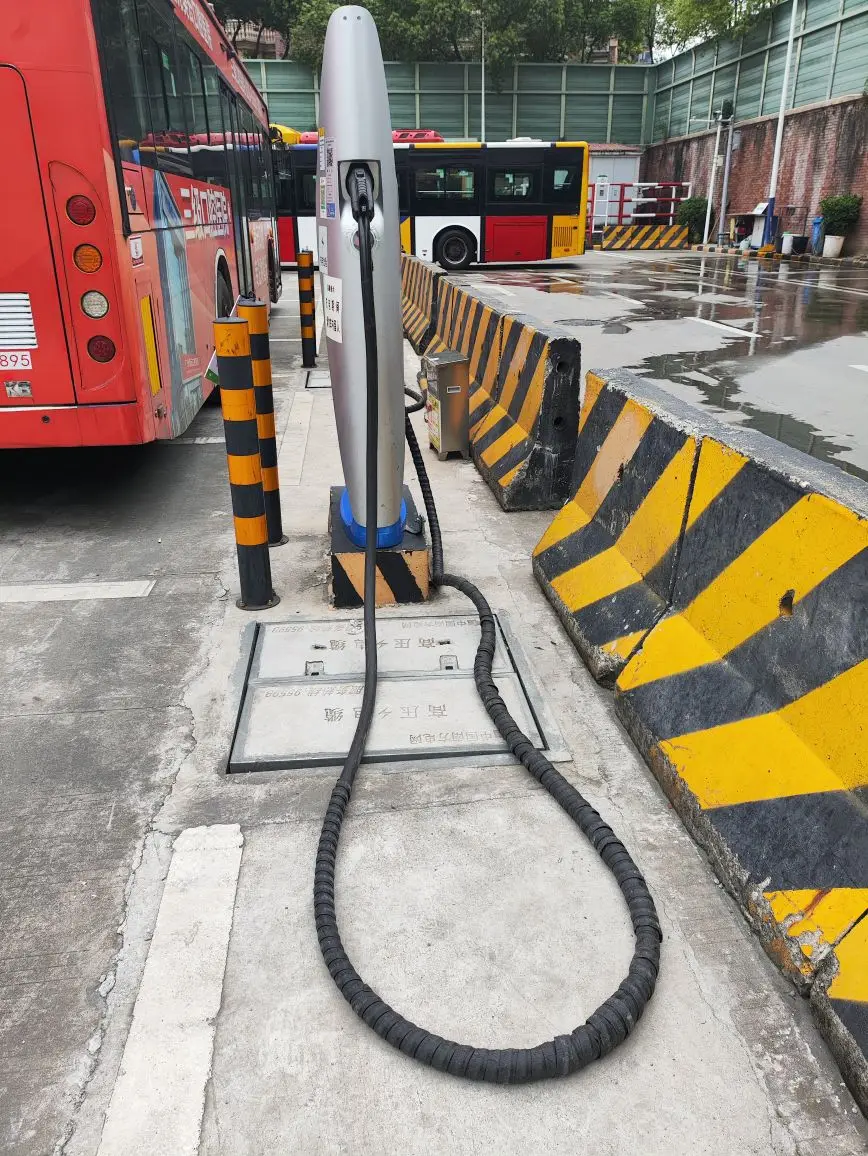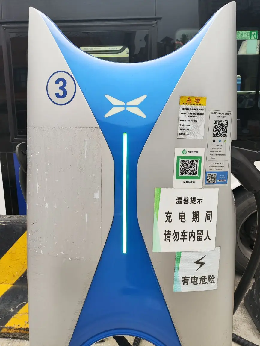 这个充电站是和公交车总站设置在一起的,总共有4个自营充电桩,1个超快充