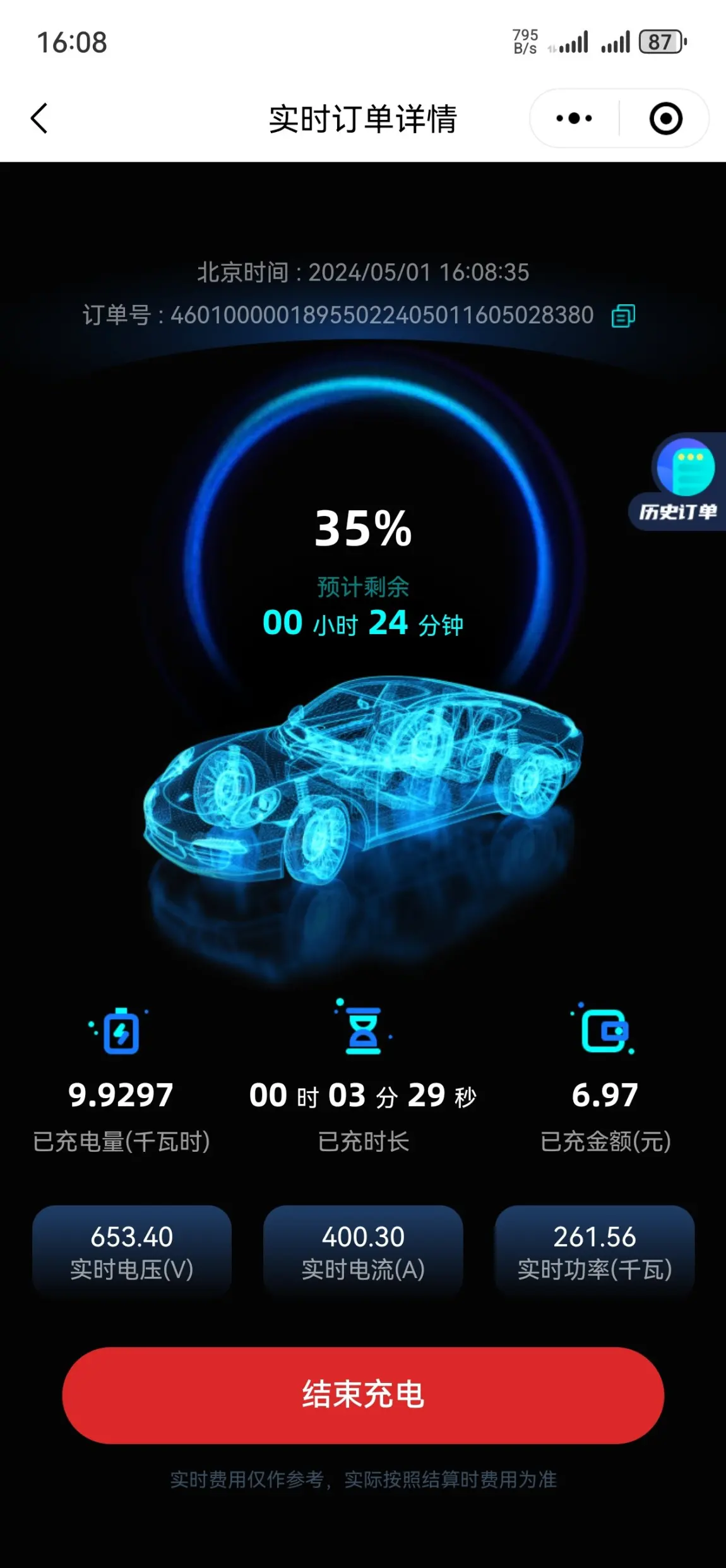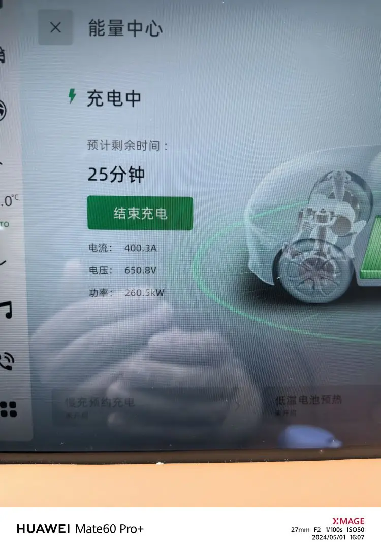 昆明,中国石化的华为600KW液冷超充,最大功率260KW,这应该是小鹏G9的最快速度了,和S4充电桩差不多。