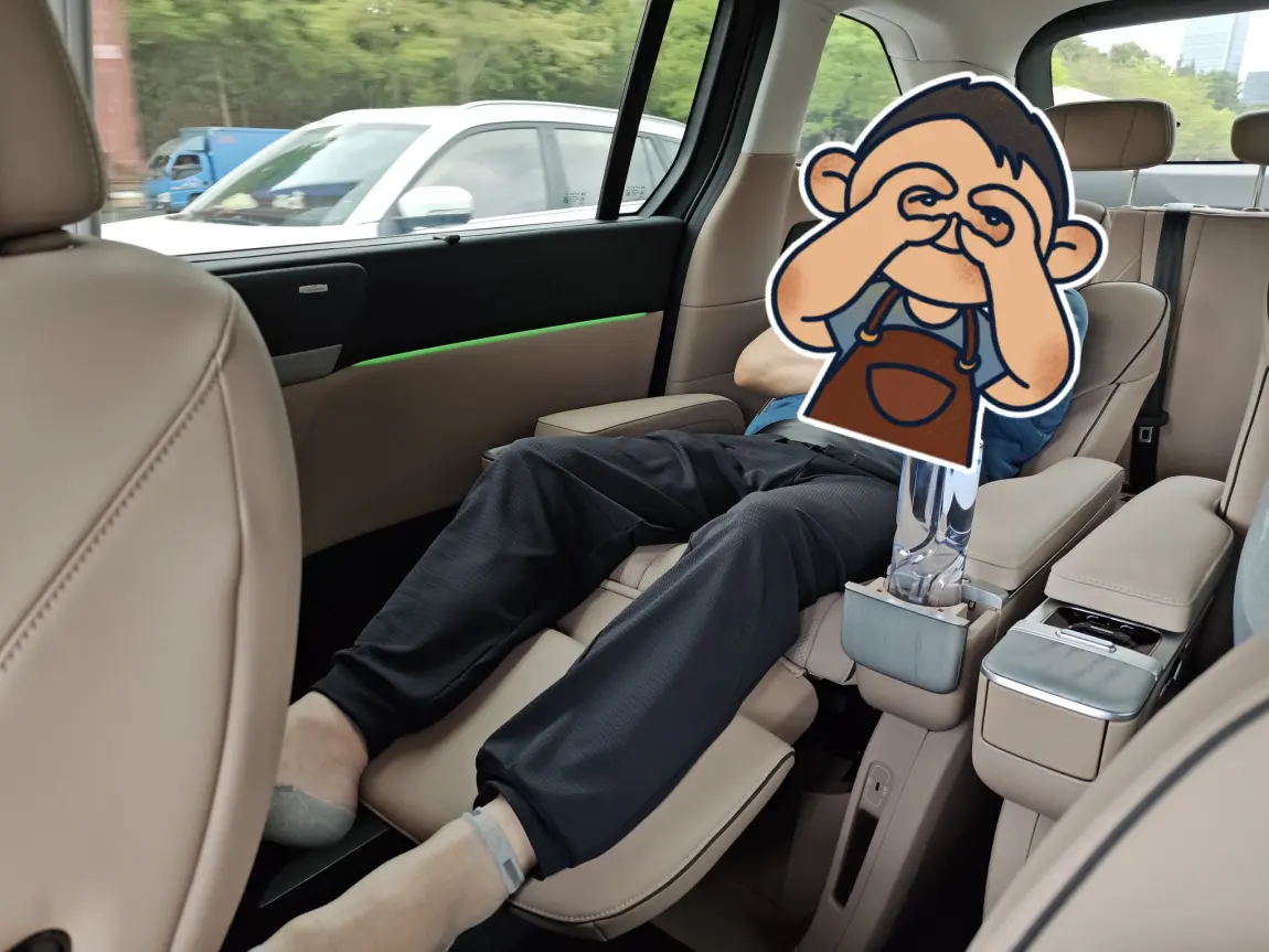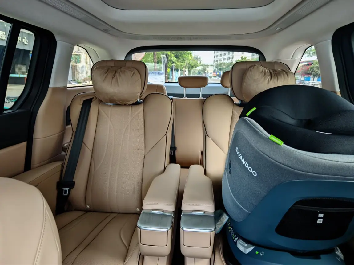 在选择座椅配置时,我在张店长的建议下对比了带航空座椅和中间过道的两种版本。经过实地体验发现,中间过道版本的座椅略窄大约1个手掌的距离,而且躺平后座椅平整,可能会造成乘客滑动。考虑到我家人的体型偏胖,经过多次纠结后,我选择了更适合我们家庭的“零重力”版本座椅。选择车辆配置时确实需要根据家庭成员的实际情况和需求来决定。