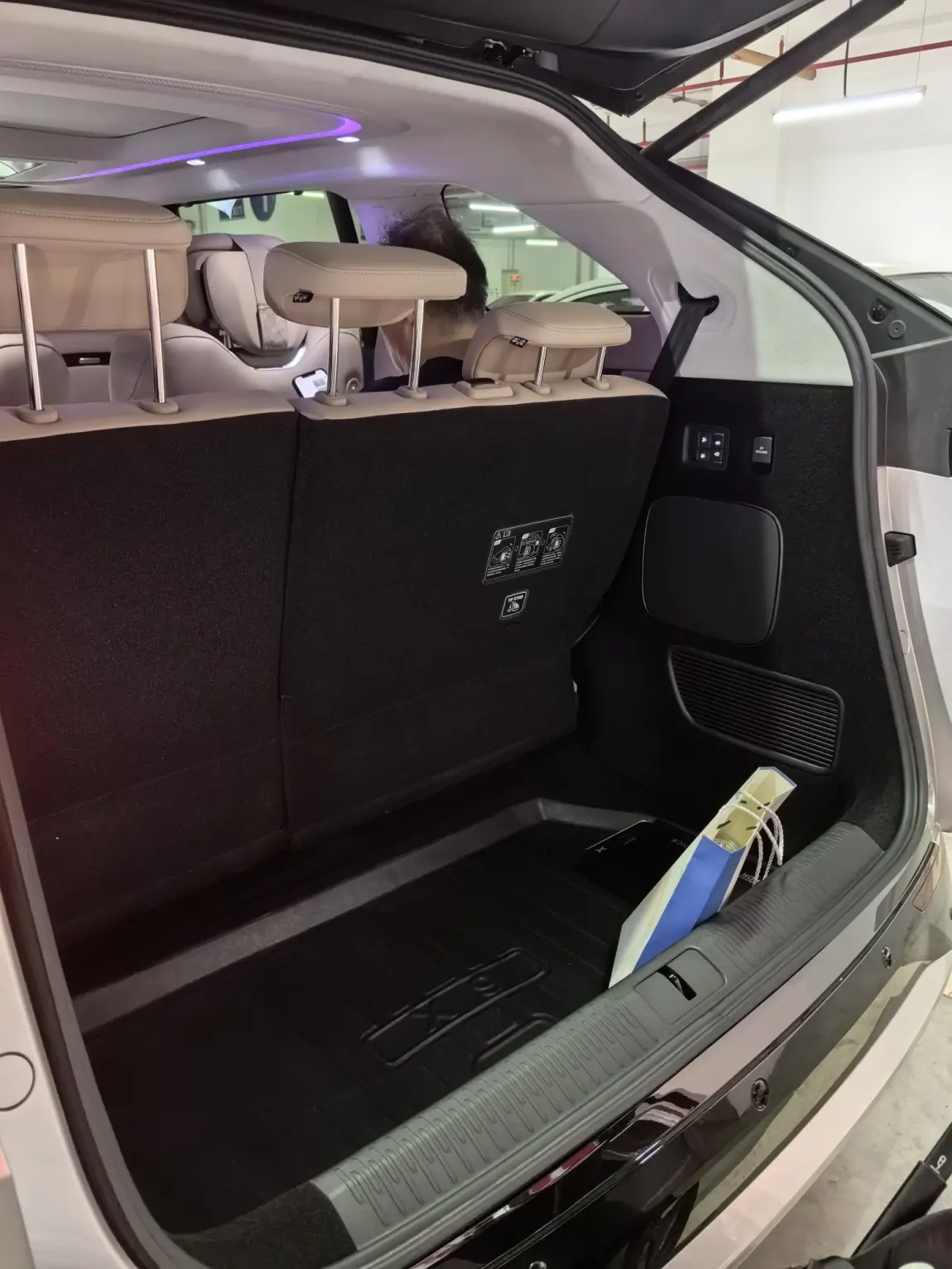 车内空间是我选车时非常关注的一点,小鹏X9的三排座位设计相当均衡。虽然零重力版本的座椅比过道版本略厚,但这种差异并不明显。特别是第二排的座椅,提供了极其舒适的体验,特别是在零重力模式下,可以让人完全放松。值得一提的是,第二排座椅的前后调节非常流畅,没有传统油车那种齿轮段落感,调整速度也异常迅速,这使得第三排的乘客可以非常容易地进入或离开座位。