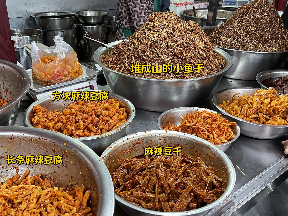 还有豆干条,小鱼干,豆皮等,种类很多。