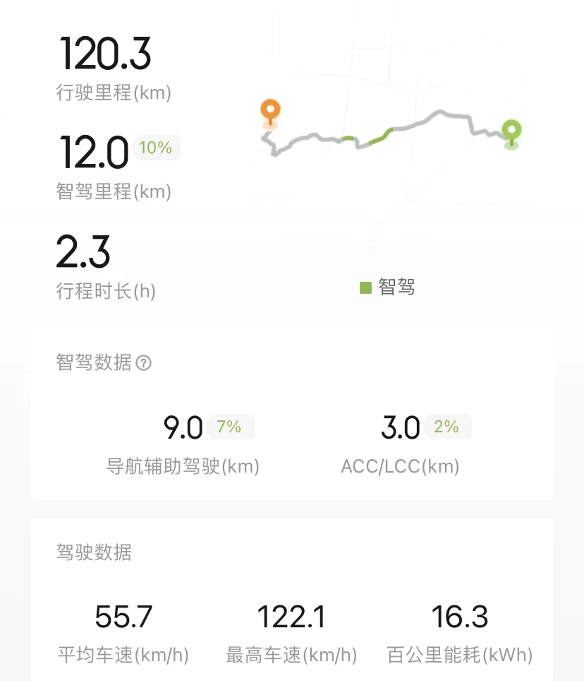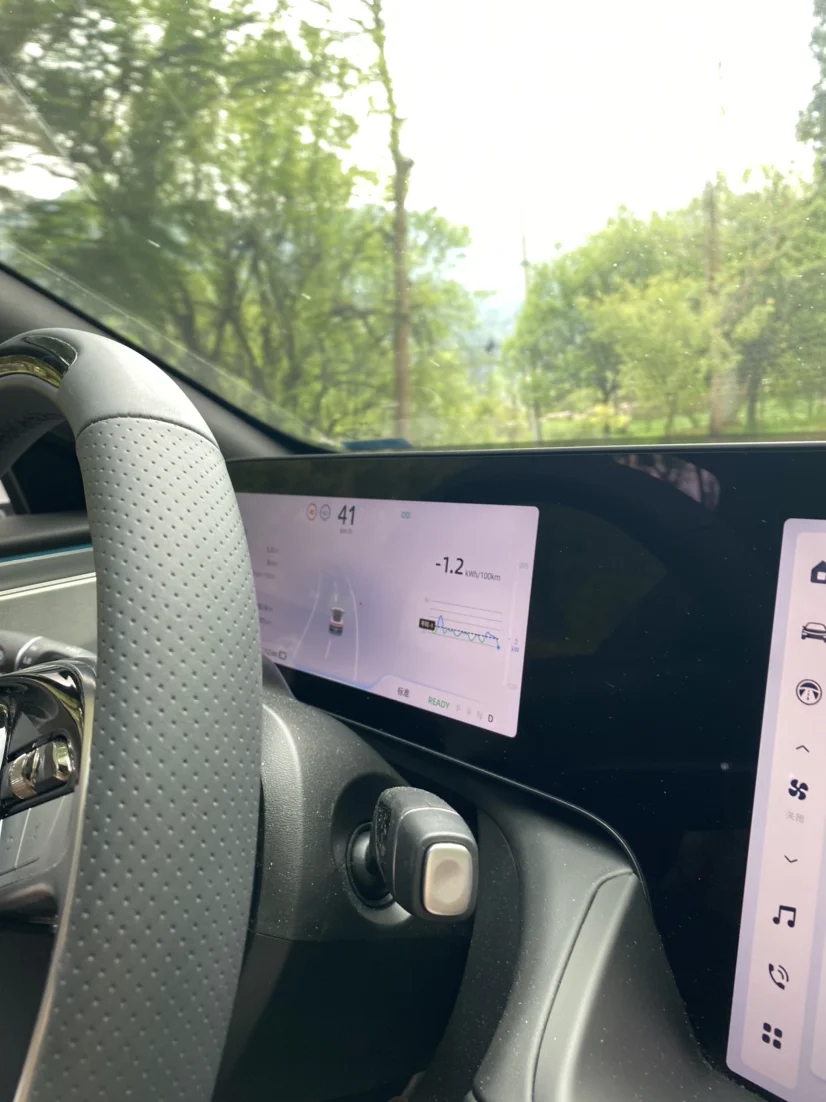 这里特别要说一下有一段回程路上是下坡路,还进行了反向充电,全程30多km路上电耗最多达到了-5kwh/km